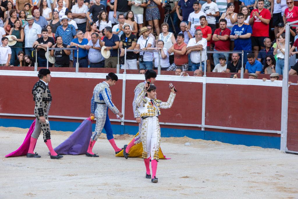 Manseó el segundo de la tarde, también con el hierro de Espartaco. Brindó la faena de muleta Víctor Acebo al empresario Pedro Chicote. El pachequero estuvo muy entregado y por encima del animal que no se prestó al lucimiento. Centró su labor en la mano derecha, por donde ofreció muletazos de calidad. Tras matar de estocada casi entera y descabello, paseó la primera oreja.
