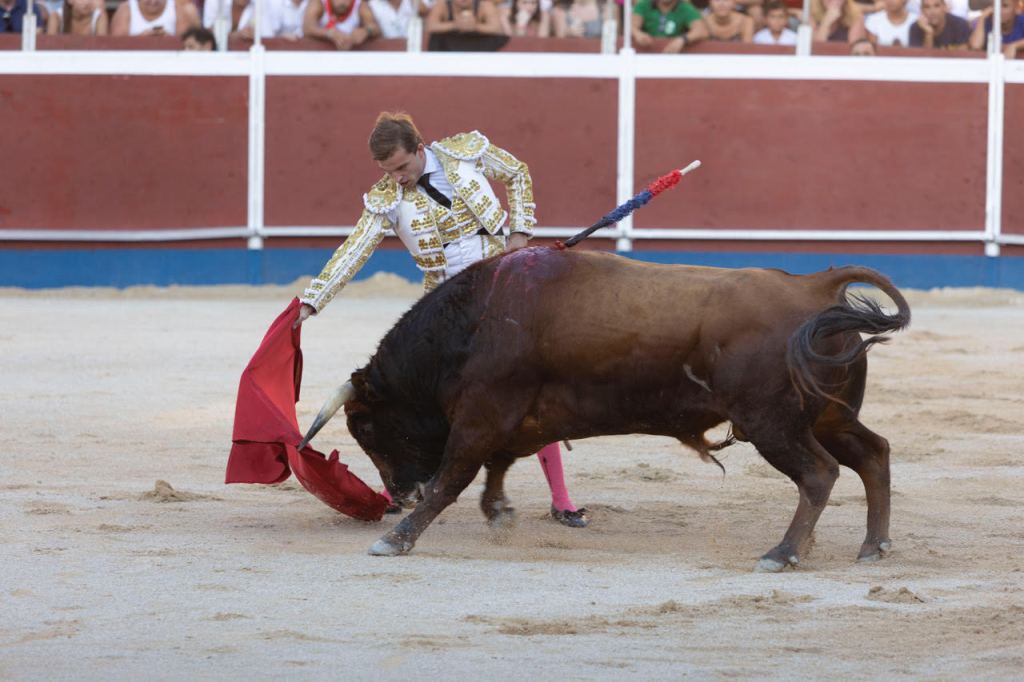 Comenzó la tarde Marcos Linares realizando una meritoria actuación ante un primer novillo de Espartaco que no se lo puso fácil, llegando a ser incluso volteado. Se quedaba corto el animal, buscando lo que se dejaba atrás. Basó la faena de muleta por el pitón derecho, con buena disposición y conexión con el público. Destacó un templado cambio de mano en la primera tanda. Cobró una buena estocada. Vuelta al ruedo.