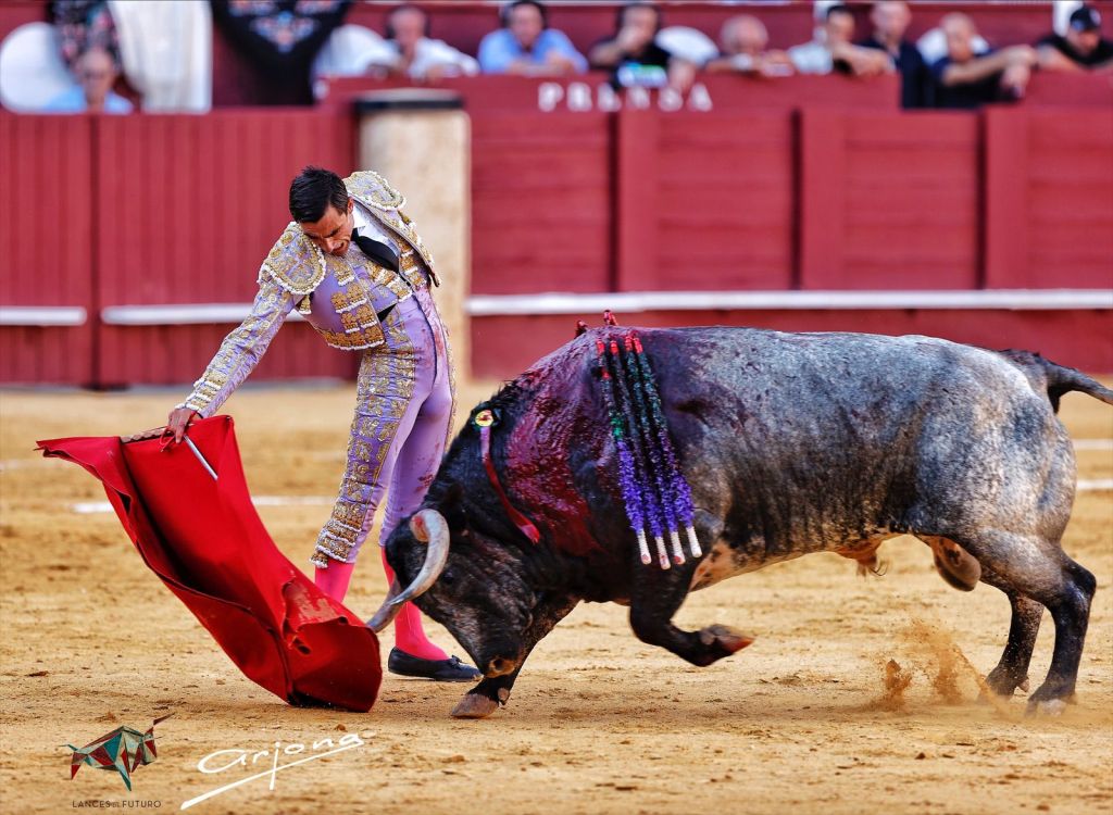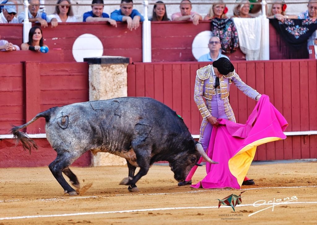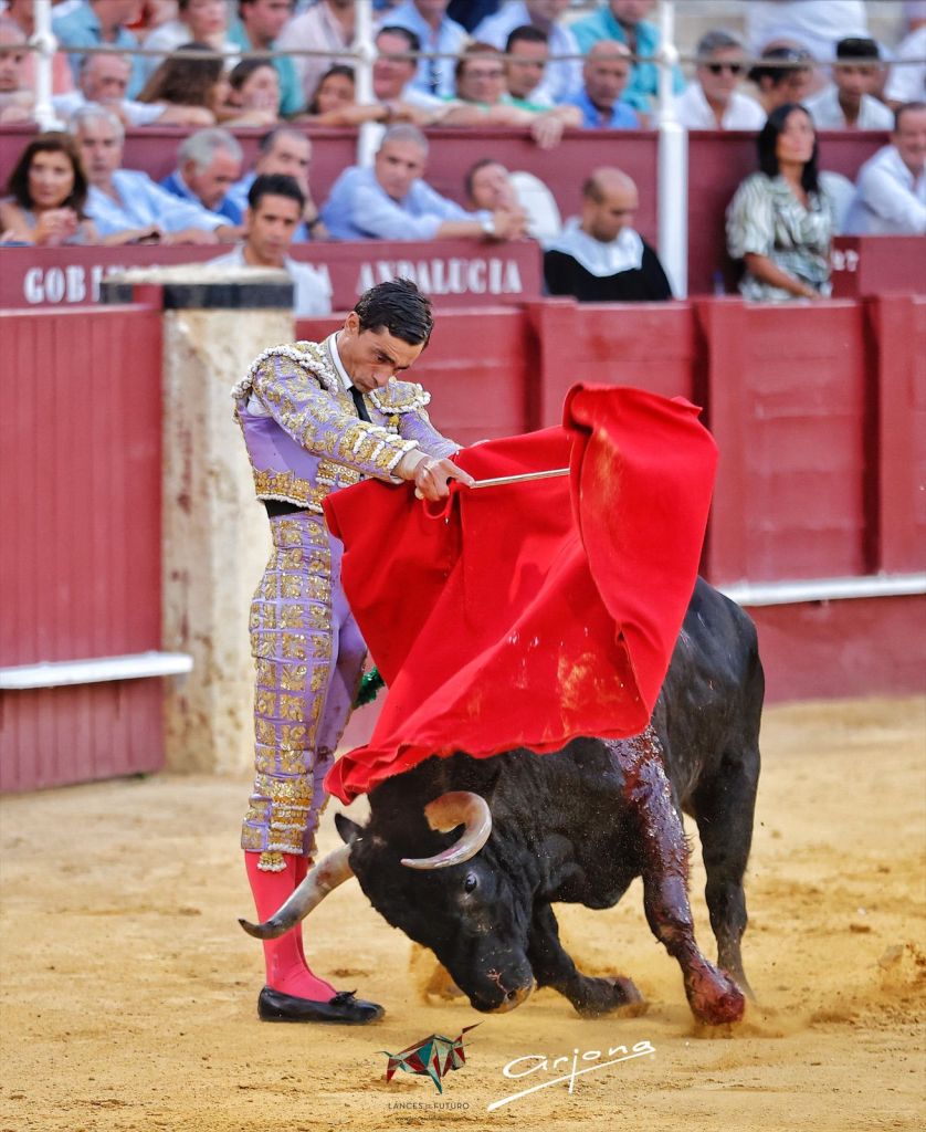 El tercero de Pallarés se frenó en el capote de Ángel Téllez que se lo sacó para los medios con solvencia y elegancia. El torero, que se presentaba en Andalucía como matador de toros, tuvo delante un bravo animal que derribó dos veces a la cabalgadura en el tercio de varas. Tras un inicio de tanteo con el exigente santacoloma, el toledano sacó el temple, se relajó y dejó soberanos naturales donde paró el tiempo. En un descuido, al rematar una serie, el toro se lo echó a los lomos, dándole una escalofriante voltereta de la que milagrosamente salió sin consecuencias. Ni se miró el torero que volvió a la cara del toro para volver a dejar naturales extraordinarios donde remató las intensas y jaleadas tandas con pases de pecho. La pureza fue su denominador común. El final de faena tuvo sabor, dejando muletazos por bajo con gusto. La espada no le funcionó, pero pese a ello dio la vuelta al ruedo. Excelente actuación de Téllez.