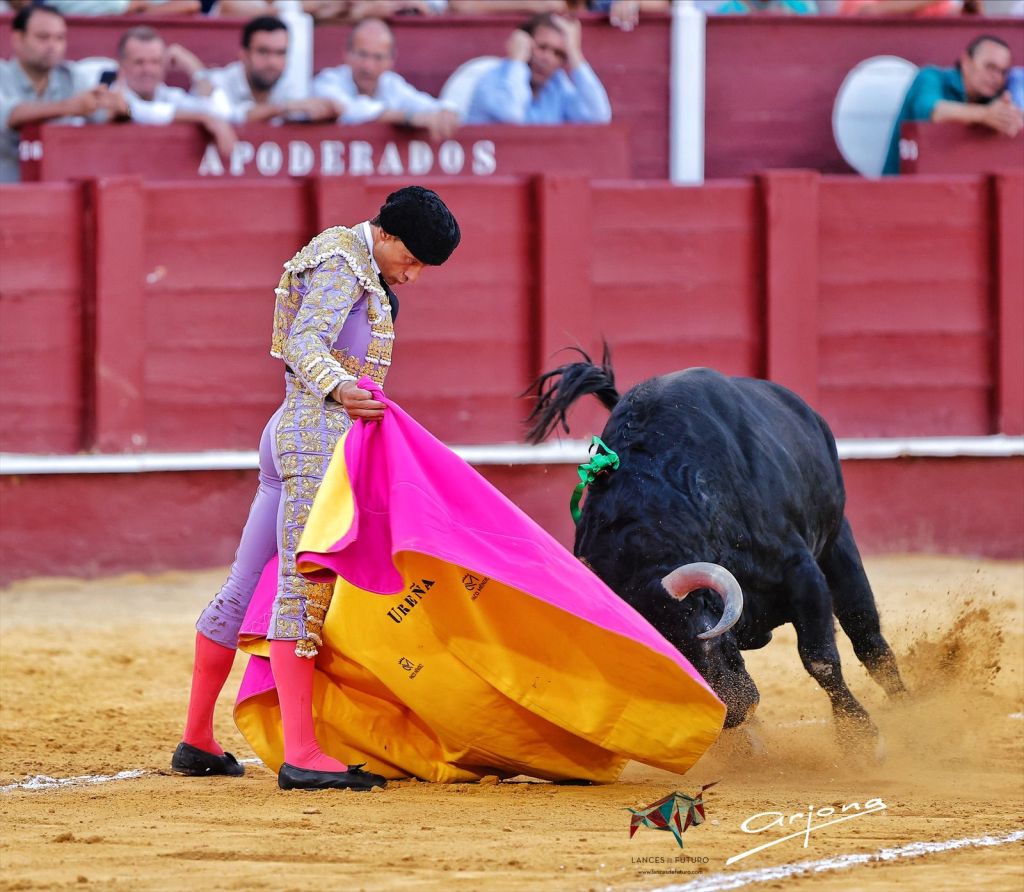 Antes de enfrentarse al de Pallarés, Ureña brindó el trasteo a el torero malagueño Jiménez Fortes, presente en la plaza. En los primeros compases de faena hubo conjunción entre el torero y el torero. El de Lorca se acopló a las nobles embestidas del de Santa Coloma y dejó buenos derechazos rematados con pases de pecho largo. Hubo una tanda con la figura erguida muy conseguida. Pero el toro echó la persiana pronto, empezó a ofrecer dificultades y la faena se fue abajo. Pese a ello Ureña mostró solvencia. Mató de pinchazo y media estocada que le sirvieron para escuchar la ovación del respetable.