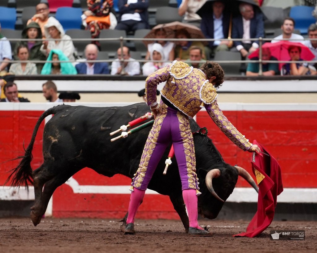Mario Navas no tuvo suerte con el tercero. Un animal soso y sin transmisión con el que lo intentó todo para lucir. El animal no era propicio, pero el novillero alargó demasiado la faena y aburrió a los presentes. Pasó un quinario con la espada. Silencio.