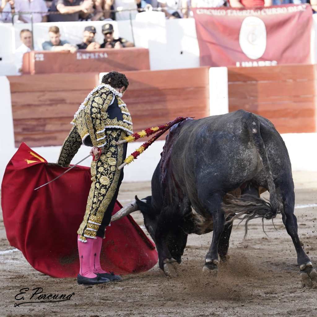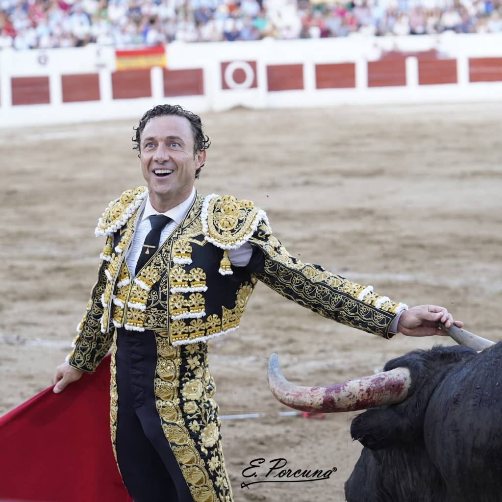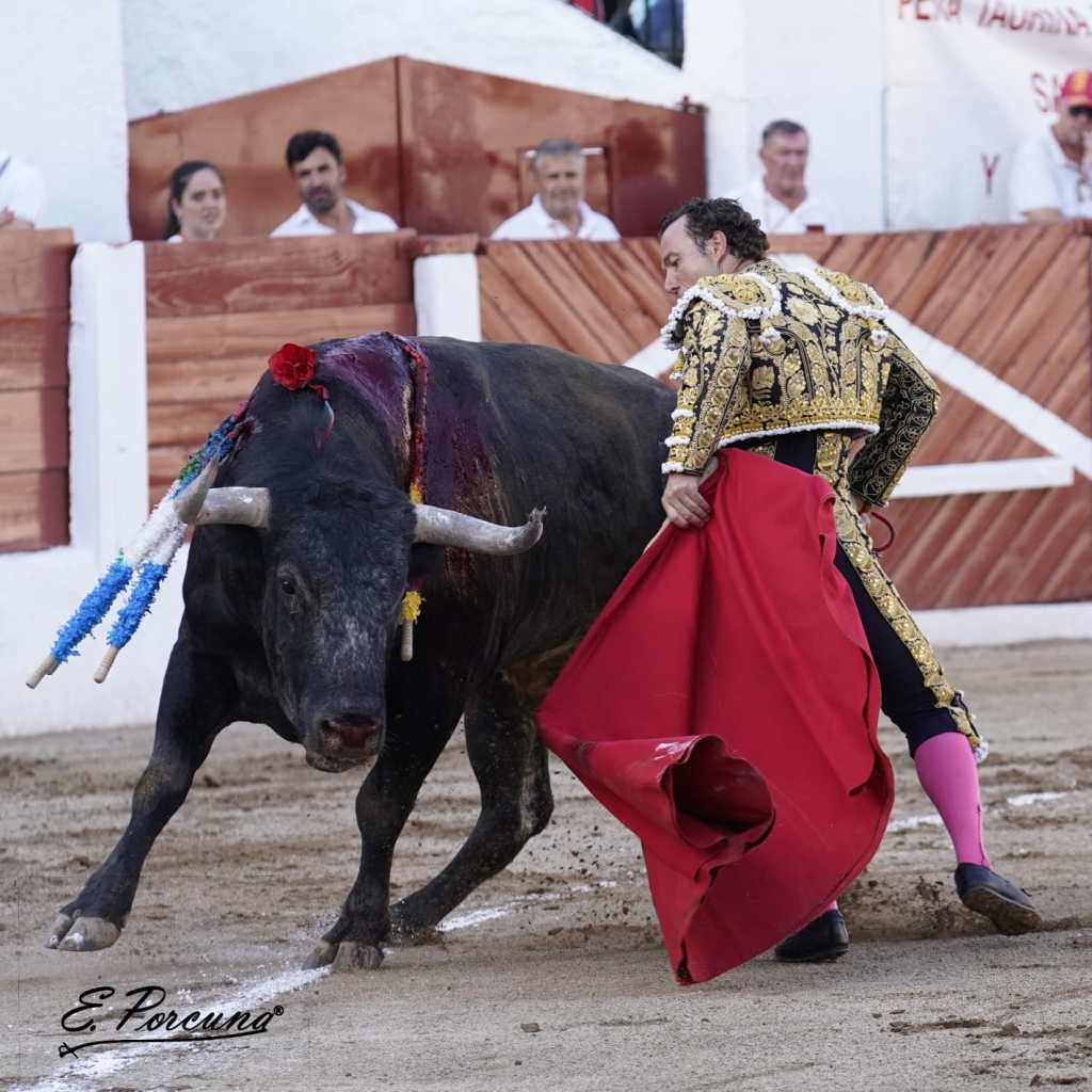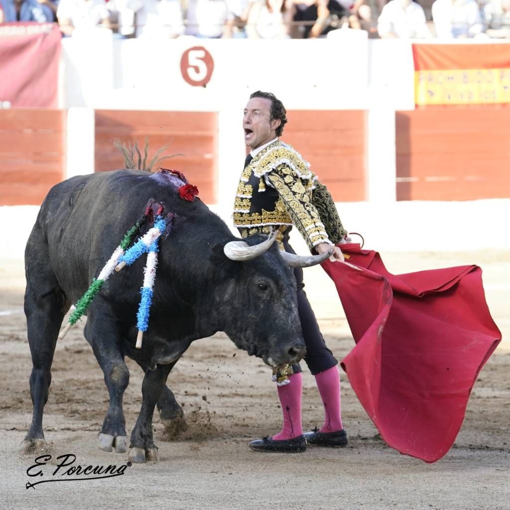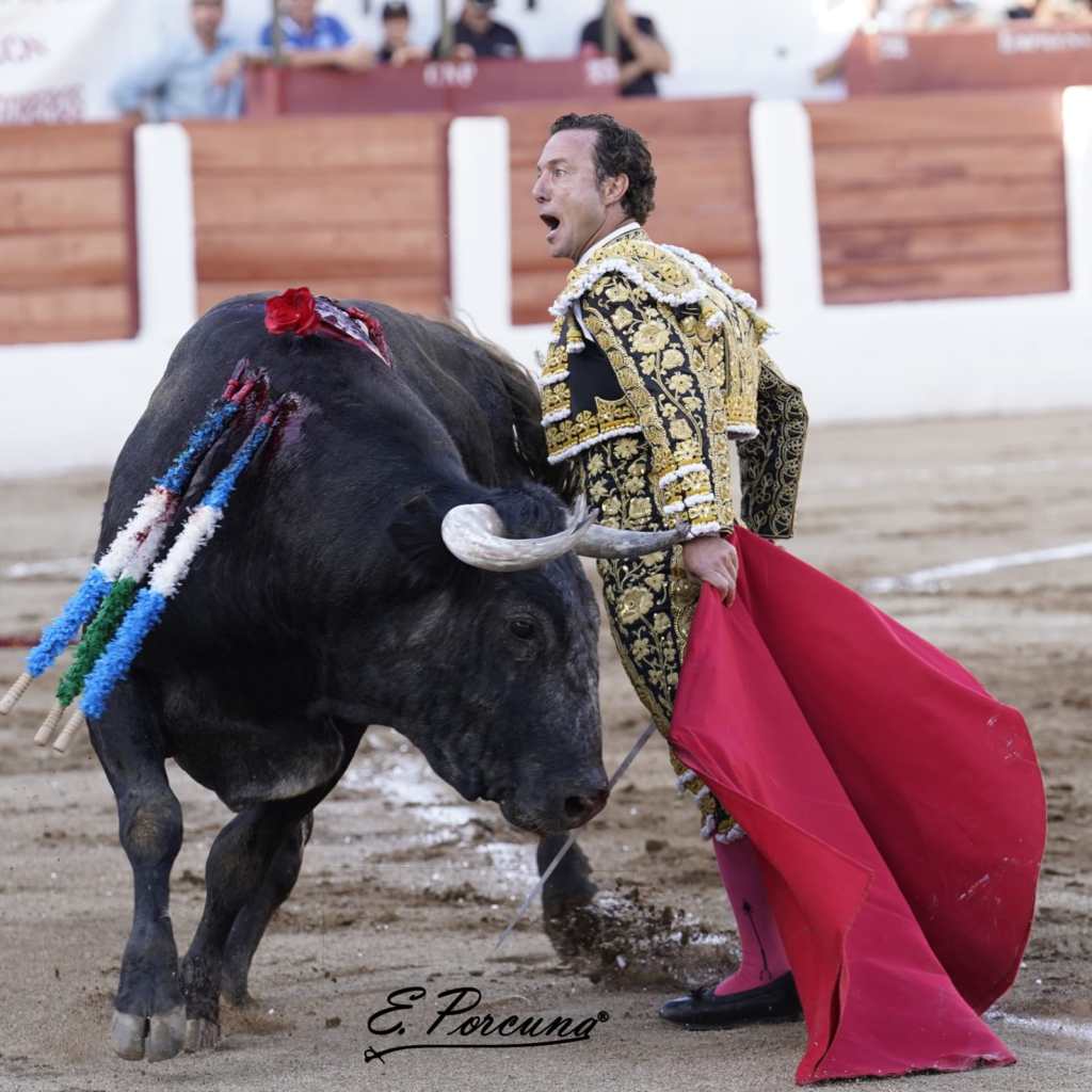 “Rafaelillo” formó una de las suyas con el primero de Miura de nombre “Zorrero”, un animal alto, pero escaso de Kilos, al que recibió con una larga cambiada de rodillas para después dejar verónicas largas y templadas. El de Miura mostró falta de fuerzas en el tercio de varas y se vino arriba en banderillas. El animal, con emoción y movilidad, era perfecto para que el catedrático de los de Lora del Río dictara lección. Y como no podía ser de otra manera, la dio. El murciano dejó series conseguidas por ambos pitones, donde además de garra sacó una estética sublime, dejando pases de entrega máxima y de relajo, mirando al tendido. Alargó la faena “Rafaelillo” tratando de exprimir las embestidas del toro. Puso de acuerdo a los aficionados y tras una estocada entera, un punto desprendida, que fue suficiente para atronar al animal, paseó la primera oreja de la tarde.