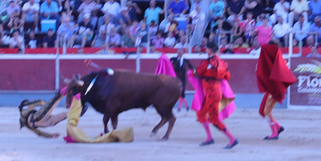 El sulbalterno CARLOS DONAIRE sufrió una cornada de dos trayectorias en el glúteo izquierdo en la lidia del segundo novillo de la tarde. La más inferior rompe el músculo y fascia en una longitud de unos 18 centímetros. La otra trayectoria es más subcutánea y de unos 10 centímetros. Se realiza friedrich de ambas salidas, sutura del músculo glúteo y sutura de fascia muscular. Se dejan dos drenajes, uno en músculo y otro subcutáneo. Pronósitvo GRAVE, siendo trasladado al hospital «Virgen de la Arrixaca» de Murcia.