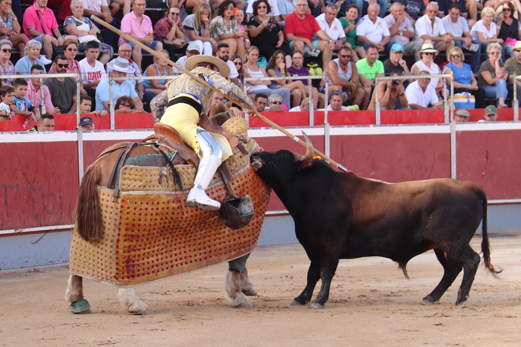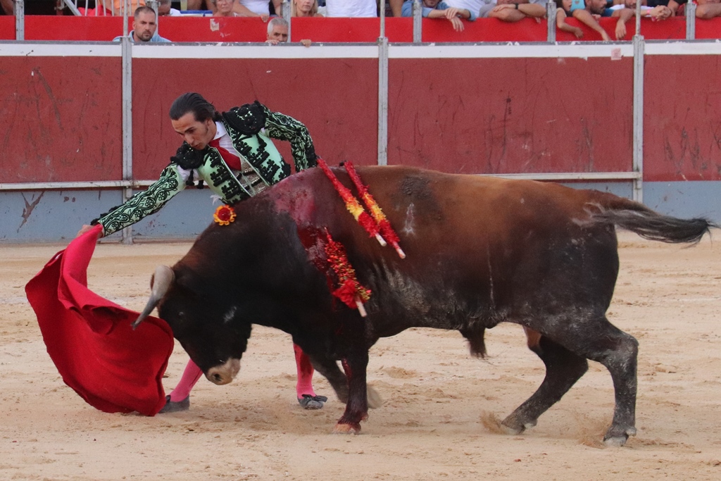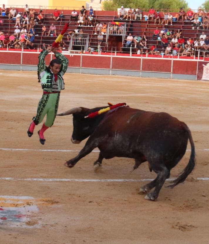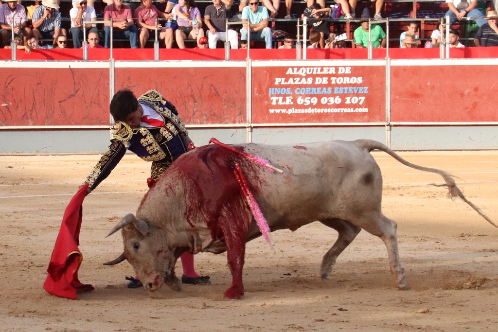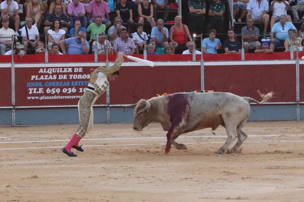 Abrió el festejo Joao D´Alva frente a un castaño de Tomás Prieto de la Cal saludando una ovación tras una actuación solvente y firme frente a un animal que siempre llevó la cara arriba y que intentó echárselo a los lomos. Fue bonito el recibimiento a la antigua que el novillero instrumentó en el recibo con el capote. En banderillas cuajó una actuación notable, colocando dos pares de muy buena ejecución y otro al quiebro, en el que marró al primer intento. Lejos de amedrentarse con un novillo complicado, el novillero volvió a intentarlo, colocando, esta vez sí, un gran par que puso al respetable en pie. Luego con la muleta estuvo firme tratando de sacar partido de un deslucido animal. Mató de estocada arriba entrando de forma habilidosa.