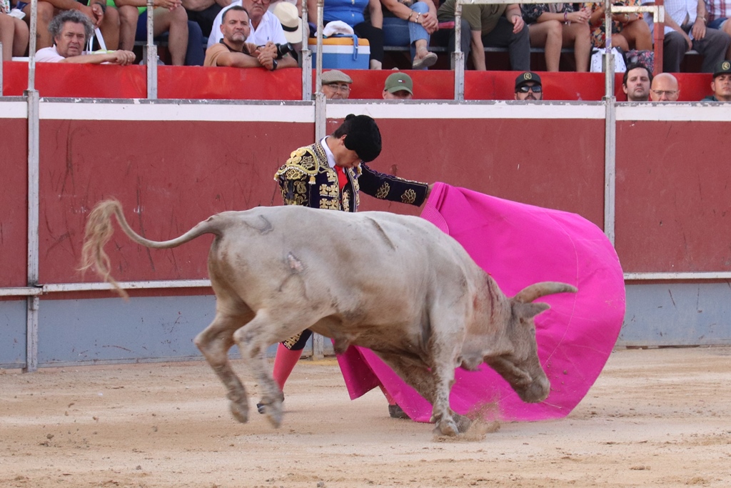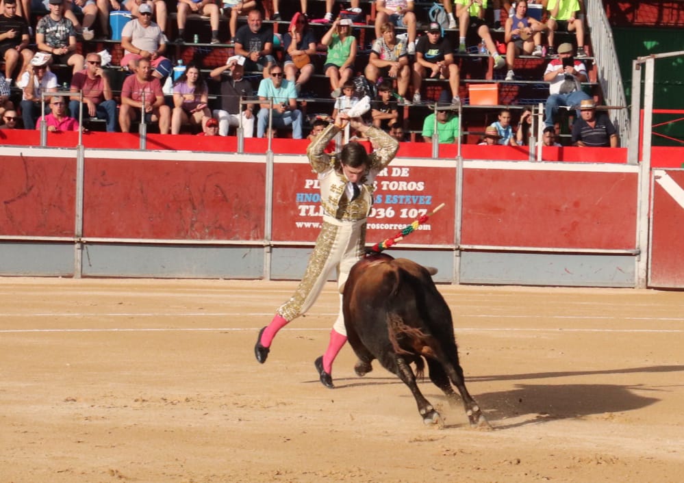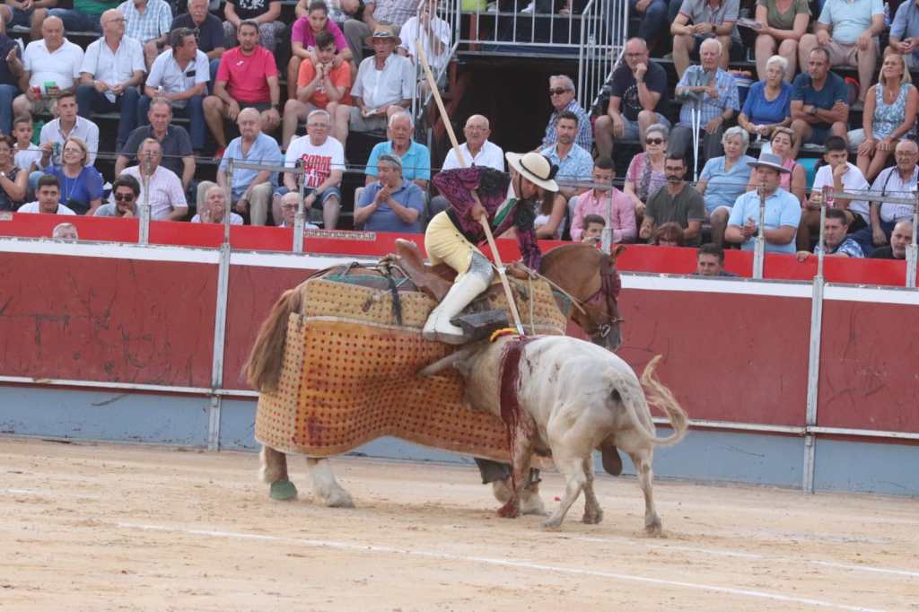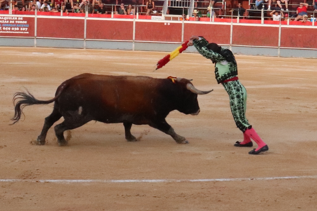 Abrió el festejo Joao D´Alva frente a un castaño de Tomás Prieto de la Cal saludando una ovación tras una actuación solvente y firme frente a un animal que siempre llevó la cara arriba y que intentó echárselo a los lomos. Fue bonito el recibimiento a la antigua que el novillero instrumentó en el recibo con el capote. En banderillas cuajó una actuación notable, colocando dos pares de muy buena ejecución y otro al quiebro, en el que marró al primer intento. Lejos de amedrentarse con un novillo complicado, el novillero volvió a intentarlo, colocando, esta vez sí, un gran par que puso al respetable en pie. Luego con la muleta estuvo firme tratando de sacar partido de un deslucido animal. Mató de estocada arriba entrando de forma habilidosa.