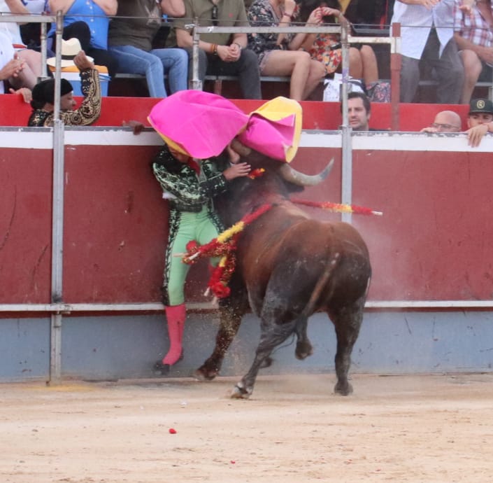 El quinto cogió de manera espeluznante a Víctor Cerrato cuando este trataba de llevarlo al caballo de picar. El novillero quedó conmocionado en el ruedo y las cuadrillas se lo llevaron apresuradamente a la enfermería donde recuperó la consciencia. No se le apreció cornada, pero fue trasladado al hospital Virgen de la Arrixaca de Murcia para realizarle un TAC. Asumió la lidia Joao D´Alva, que regresó al ruedo tras pasar por la enfermería y ser revisado de la voltereta recibida en el cuarto novillo. En banderillas se notó verdadero pavor entre las cuadrillas. El animal fue cambiado solo con un par de banderillas puestas. Joao le tocó las costillas al novillo y honesto se fue a por la espada para liquidar al barrabás. Dejó media estocada y dio por finiquitado un capitulo digno de “Historias para no Dormir”.