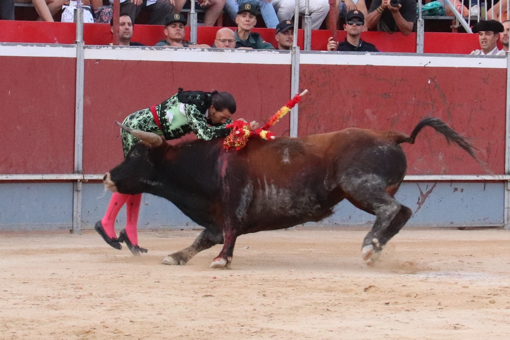 Miguel Andrades se entregó desde el principio con otro castaño de Prieto de la Cal de los que le guardan los tomates a la Marquesa de Seoane. Complicado el novillo y valiente a más no poder el novillero, que a veces atropelló la razón, pero eso, en alguien que quiere ser torero, es algo normal. En banderillas Andrades asustó a los presentes en un tercio donde salió con destreza de la cara de los novillos. El tercer par, donde puso banderillas cortas, fue de infarto, porque el animal lo estrelló en la barrera, escapándose de milagro de un tabaco serio. Susto importante que afortunadamente quedó solo en la fuerte tensión vivida. En la muleta el animal llevaba la cara a la altura de Pau Gasol. Una prenda con la que Miguel estuvo queriendo e intentando sacar partido de un novillo vacío y sin opciones del triunfo. Su firmeza fue reconocida con una ovación.