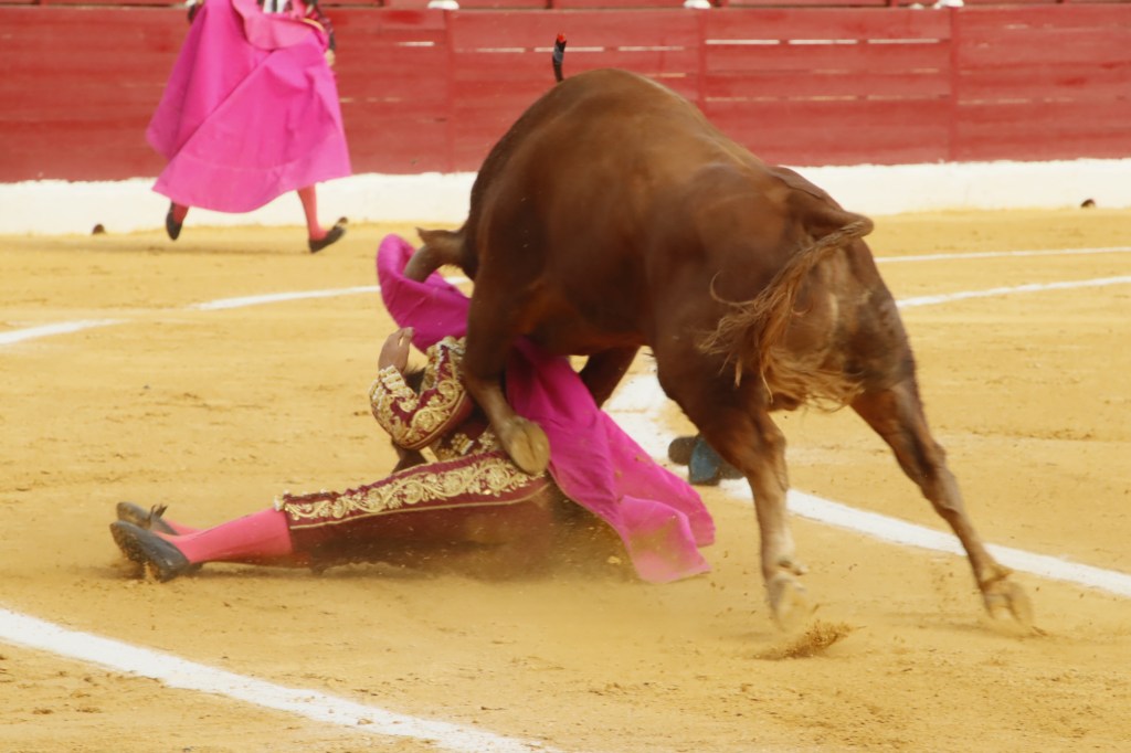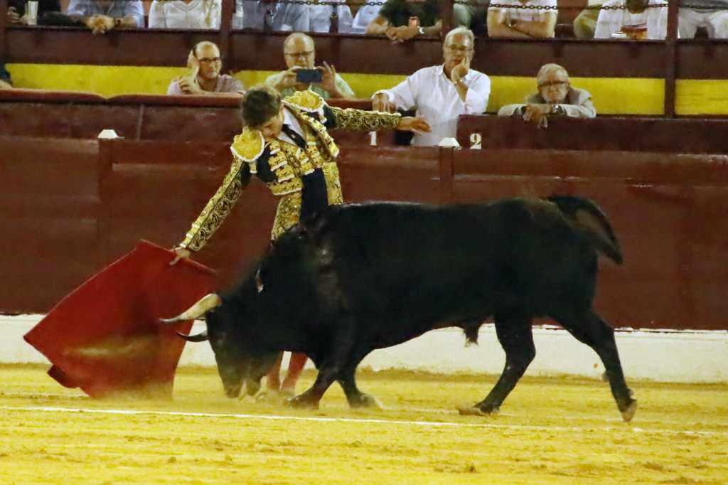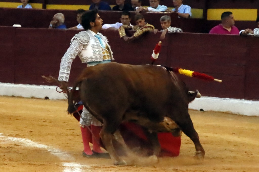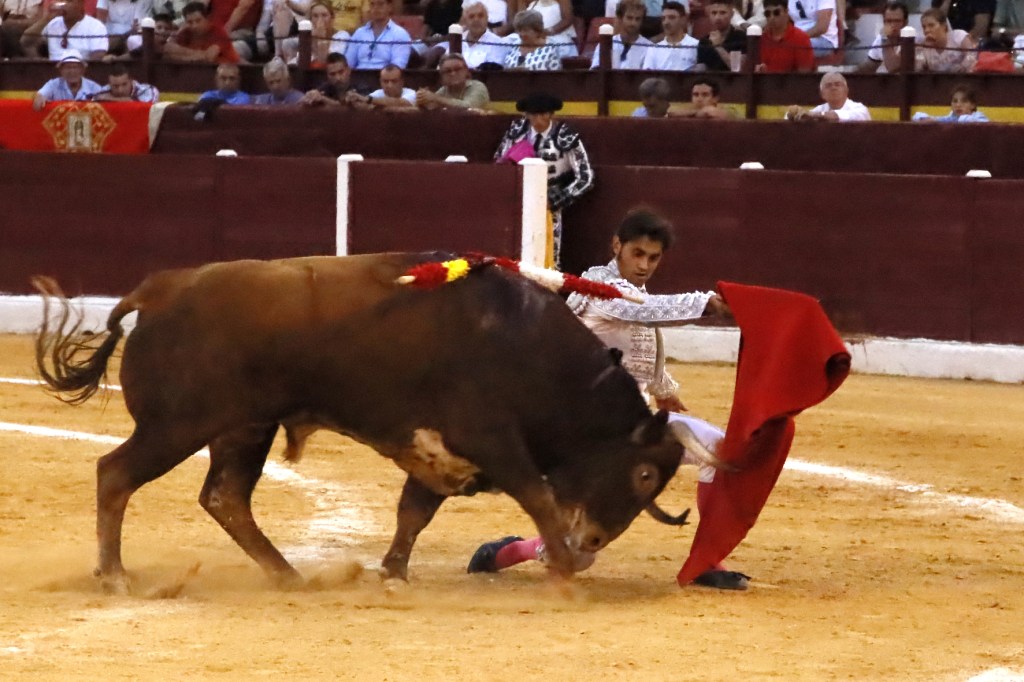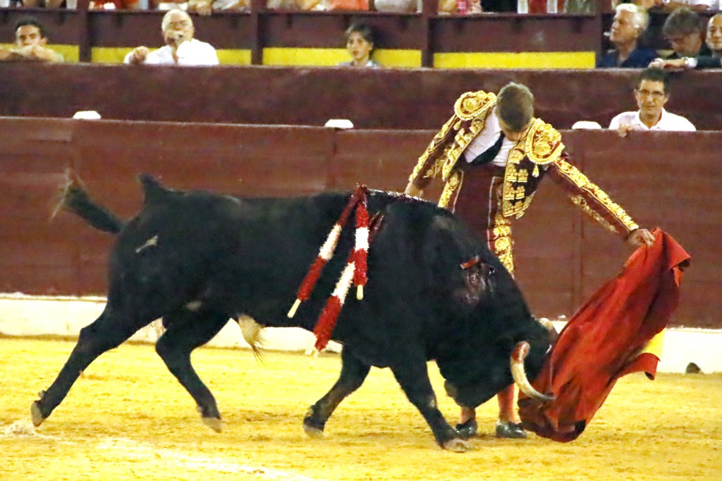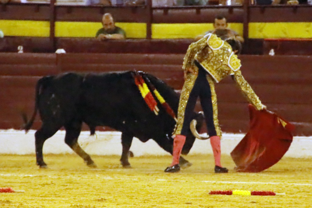 Consciente de lo que se jugaba en la tarde, “Parrita” se fue a porta gayola a recibir al segundo. El novillo no lo vio en la salida ni atendió su engaño y se pegó la vuelta al ruedo antes de visualizar al novillero que estaba de hinojos. Cuando lo vio, el animal le hizo un extraño y se lo llevó por delante, dándole una soberana paliza de la que salió ileso. Sin amilanarse, se fue al novillo para dejar un buen manojo de verónicas ceñidas, con mucha expresión y gusto. Los tercios de varas y banderillas pasaron sin novedad. “Parrita” brindó la faena a su padre, un momento emotivo que puso el nudo en la garganta a todos, al saber que su padre sufre una enfermedad de la que esperamos salga victorioso. La faena se basó en la mano derecha, donde dejó buenas series rematadas con conseguidos pases de pecho. Firme, el novillero lo intentó por el izquierdo, pero el de Núñez de Tarifa aquí iba con el freno de mano echado. Pese a ello sacó una serie de naturales muy pura y conseguida. Dejó un pinchazo antes de conseguir una estocada que fue suficiente para atronar al novillo. Tras petición mayoritaria paseó la primera oreja de la tarde y de la feria. Luego entró a la enfermería para ser revisado por el Doctor Ricardo Robles, donde se le apreció un fuerte golpe en las costillas.