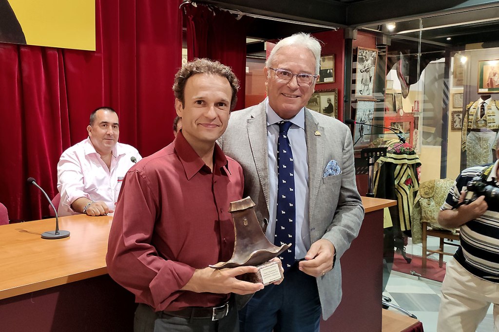 Rafaelillo y Ferrera protagonizaron una amena y distendida tertulia que sirvió como previa de la Corrida de la Prensa y que fue seguida por un público que abarrotó los salones del Real Club. La amistad de los dos espadas, las anécdotas entre ambos en las plazas de toros y sus diferentes carreras en este difícil mundo del toro marcaron el acto conducido por Iñigo Crespo. Durante el acto se hizo entrega a Antonio Ferrera del Premio a la “Faena más Artística” de la Feria taurina de Murcia de 2019. Entregó el premio, en representación del ayuntamiento de Murcia, el presidente del Real Club Taurino de Murcia, Alfonso Avilés.