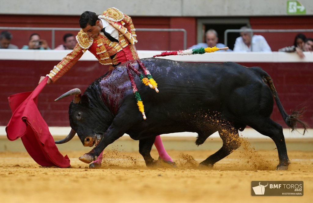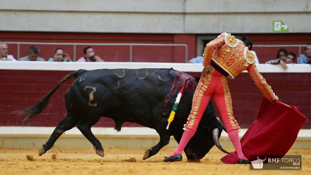 Por verónicas y una buena media saludó Leo Valadez al tercero, escuchando los olés de La Ribera. Fue un toro castaño con nobleza, humillando y queriendo tomar las telas por abajo. Protagonizó Valadez el tercio de banderillas, llegando al público; destacó un extraordinario par al quiebro. Toro con más trasmisión que sus hermanos al que el azteca aprovechó por los dos pitones, ligando series de mérito. Manoletinas para finalizar un buen debut en la plaza riojana, dejando estocada y paseando oreja con fuerte petición de la segunda que el presidente no concede. Pitos al palco.