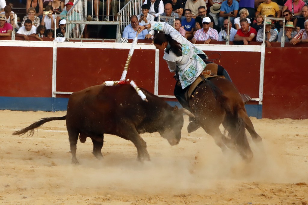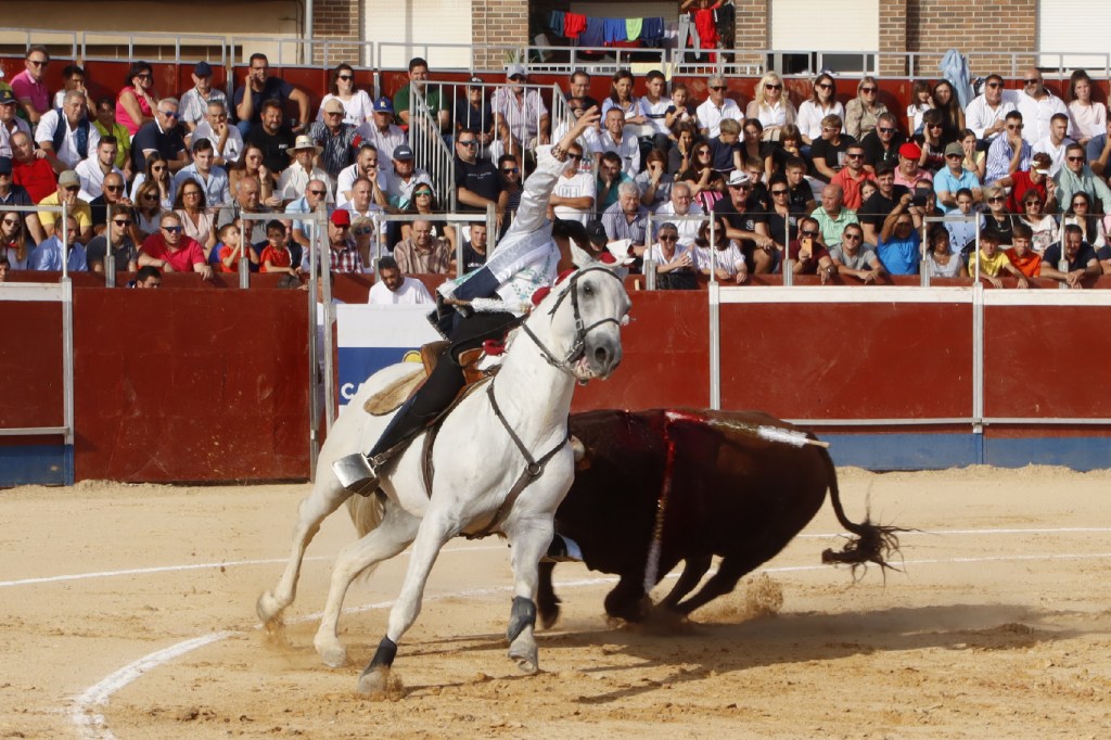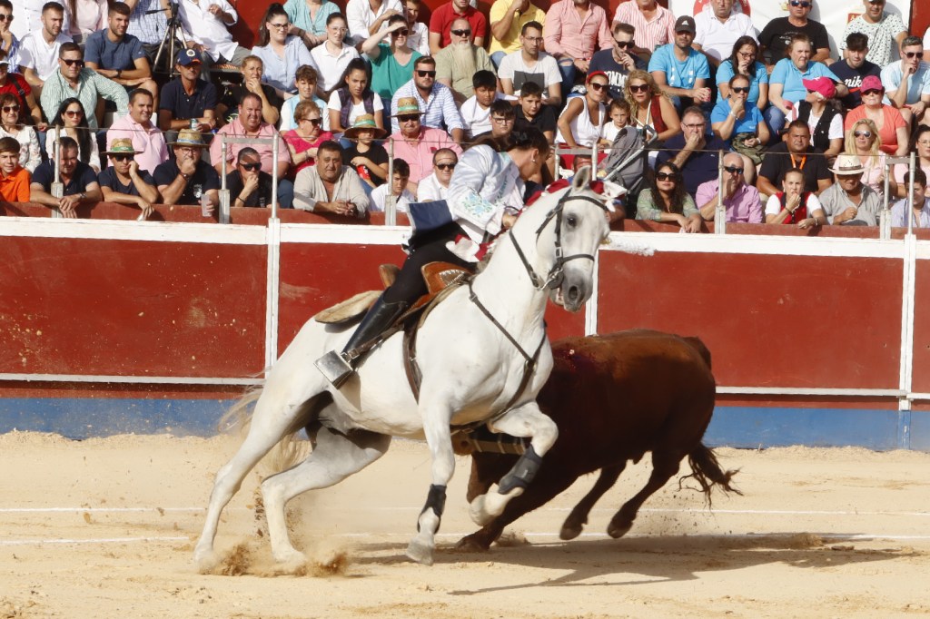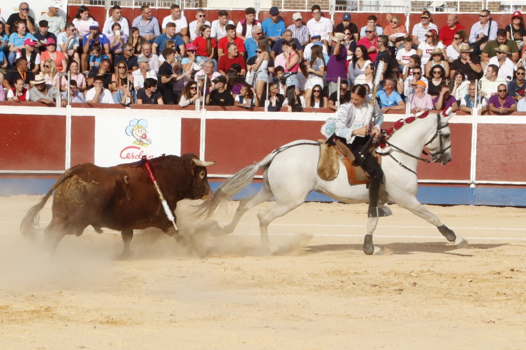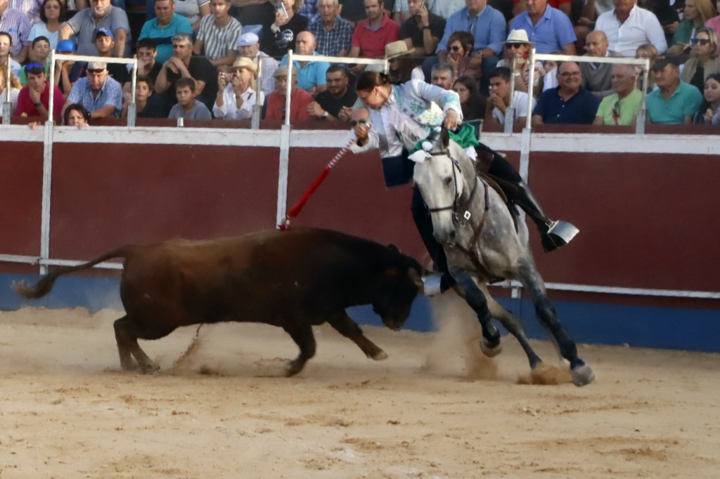 Tras el triunfo cosechado en su primer toro, la amazona portuguesa Ana Rita no se conformó y salió a por todas con su segundo oponente. El de Martín Carrasco colaboró para que Ana, entregada y siempre predispuesta a dar lo mejor de sí, realizará una buena labor con las banderillas, clavando arriba y ofreciendo buena doma de su cuadra. Muy segura, cautivó al público con su frescura y sonrisa. En la lidia de este ejemplar volvieron a aparecer los forcados de Arronches que sorprendieron con sus espectaculares pegas, algo inusual en España, que el público pachequero acogió con agrado. Tras esta fase de la faena, el de Martín Carrasco se afligió, sin duda debido a su falta de raza, y se fue a los terrenos de tablas donde incluso llegó a echarse antes de que Ana Rita utilizara la hoja de peral. No estuvo acertada a la hora de matar, se le fue la mano utilizando el rejón y perdió los trofeos. Tras una petición generosa de oreja, dio la vuelta al ruedo.
