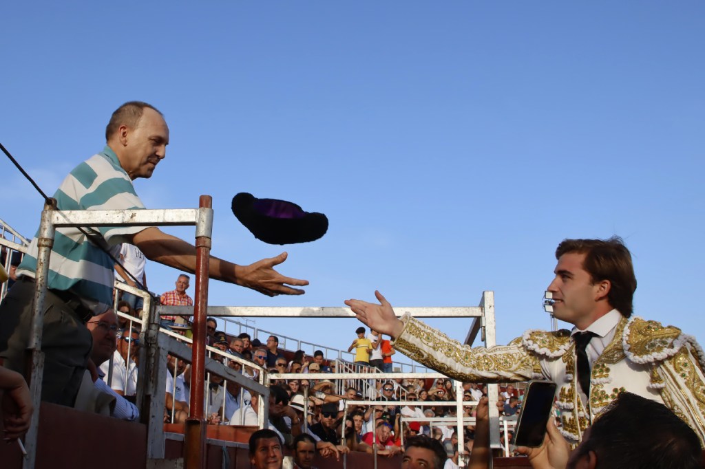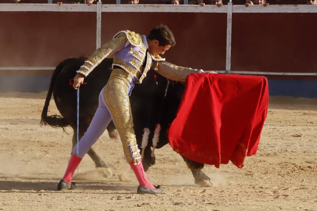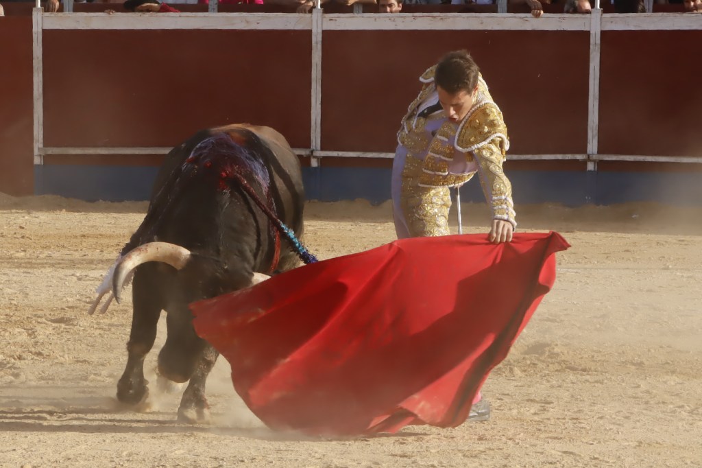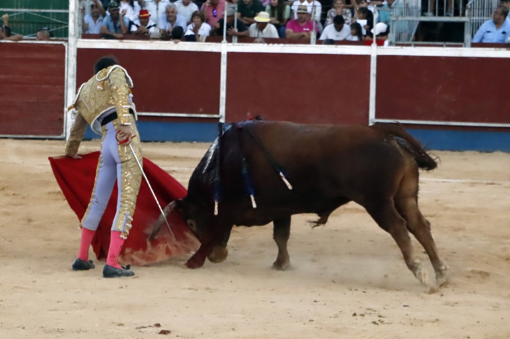 Víctor Acebo recibió al novillero que cerraba el festejo manejando sobresalientemente el percal, dejando un ramillete de buenas verónicas con un temple extraordinario. El tercio de varas volvió a pasar desapercibido, un trámite, todo lo contrario que en banderillas donde Antonio Cama y David Lorente lo dieron todo. Un gran tercio que terminó con el saludo de ambos. Este animal de “Los Ronceles” llegó también a la muleta con el fuelle y la raza justa. Acebo, sin importarle tener ya el triunfo en sus manos, intentó abrirle los caminos, sacando pasajes de toreo poderoso por ambas manos. El toro no quería, pero Acebo le obligó a tomar el engaño, dando una gran dimensión. Su pueblo, su gente, sus paisanos, se entregaron con él, y le expresaron que no lo van a dejar solo en su empreño por caminar en la difícil pretensión de querer ser torero. Mató con acierto, se le pidió con insistencia las dos orejas, y la presidencia no pudo obstáculos para concederlas. Paseó las dos orejas ante el clamor.