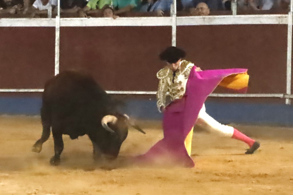 Volvía a vestirse de luces el murciano José María Trigueros, uno mes después del percance sufrido en Calasparra. Se encontró enfrente en primer lugar a un novillo noble pero justo de fuerzas. Brindó al Dr. Robles y su equipo, antes de coger la muleta. Se vació en la cara del animal, poniendo todo de su parte. Faena de carácter, entrega y emoción. Mató al tercer intento, necesitando usar el descabello, lo que dejó el premio en una oreja.