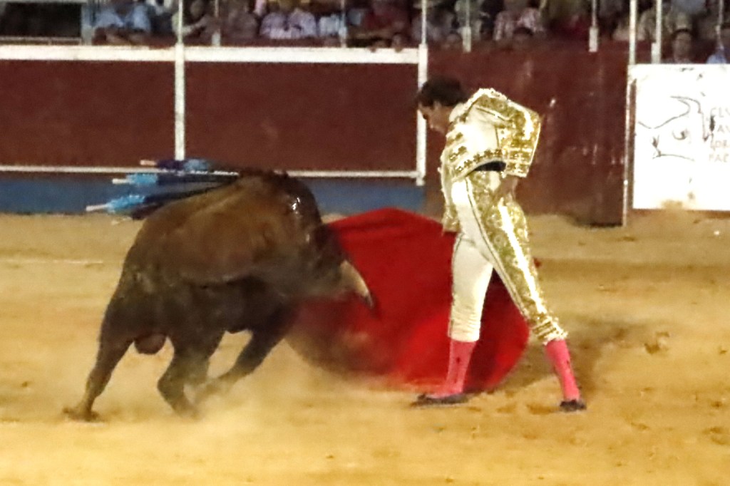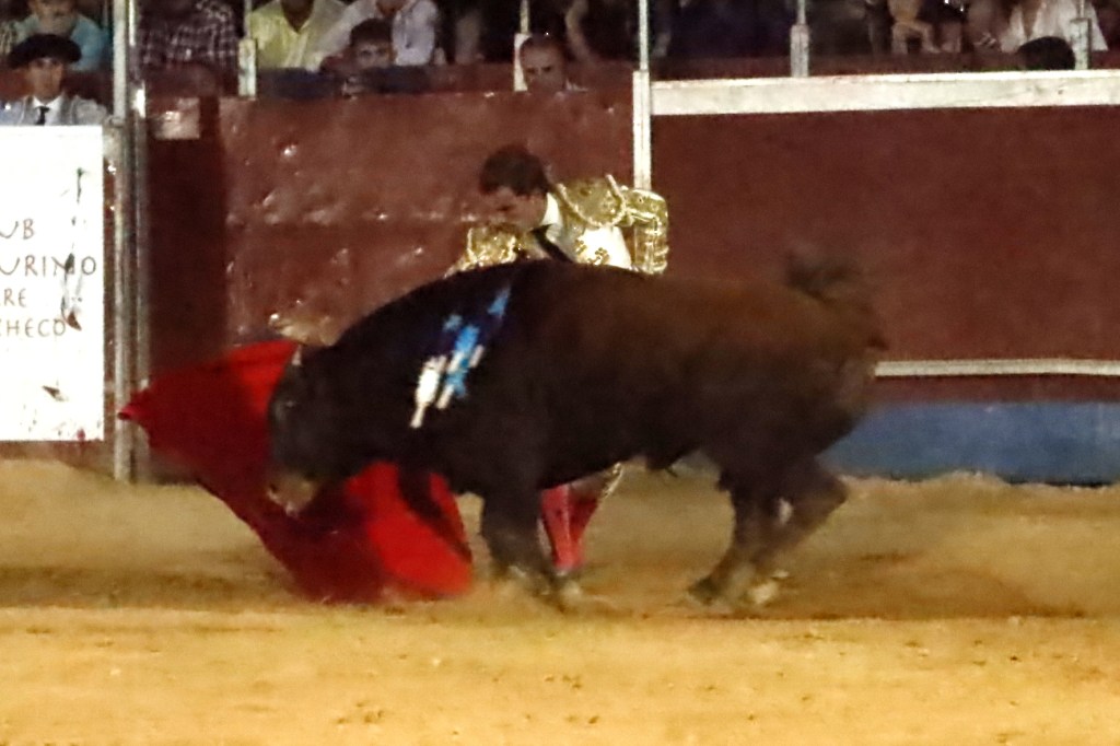Se estiró a la verónica Víctor Acebo en el saludo con el capote. Midió el castigo el picador, antes de que el matador brindase la muerte del astado al maestro Pepín Jiménez. Embistió el utrero con la cara por arriba, aunque dejó estar al joven novillero en una faena que caló de lleno entre sus paisanos. Destacaron sobre todo los pasajes por el pitón derecho y la entrega del novillero en una tarde especial compromiso para él. No defraudó el de Torre Pacheco que ofreció una gran dimensión. Mató de estocada, cortando las dos orejas.