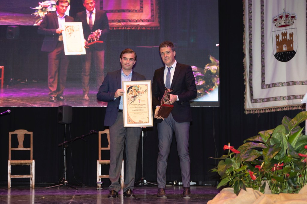 Víctor Acebo, el novillero de Torre Pacheco, recogió de manos del alcalde de Blanca, Pedro Luis Molina, el premio al triunfador del certamen de novilladas de este 2022. El joven agradeció al pueblo todo el cariño que le profesó en las dos actuaciones del pasado mes de agosto y nos emplazó a seguir disfrutando de su excelente labor en los ruedos la próxima temporada.