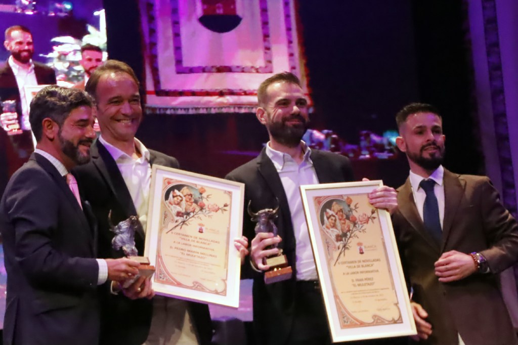 En cuanto al ‘Premio a la labor informativa’ del pasado Certamen de Novilladas Villa de Blanca, fue reconocido este medio elmuletazo.com. Sus directores, Pedro Marín Mellinas y Fran Pérez, recogieron la distinción agradeciendo a todos sus colaboradores el trabajo realizado y al Ayuntamiento de Blanca por el bonito gesto a una web que consiguió 700.000 impactos informando sobre el devenir de la feria de novilladas de este año.