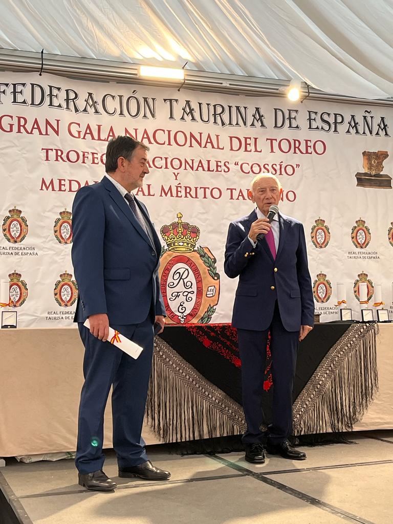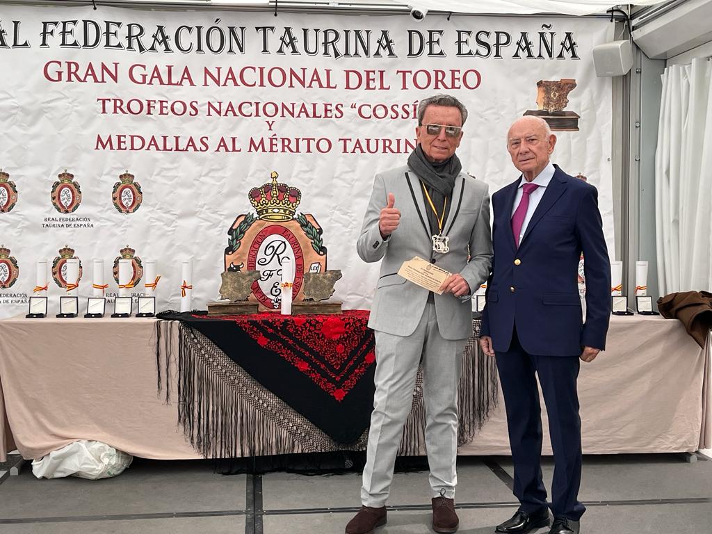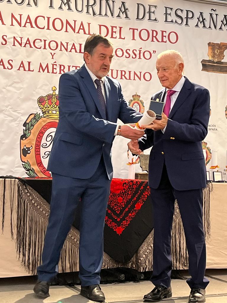 El presidente del Club Taurino de Cartagena, Manolo Sánchez Juárez, ha recogido este domingo, 26 de febrero, de manos del vicepresidente de la Real Federación Taurina de España, Salvador Azar, la Medalla de Plata al Mérito Taurino que concede esta entidad a todas aquellas personas que defienden la cultura y la Fiesta de los toros.
