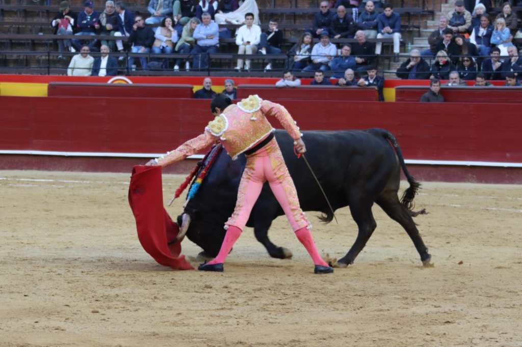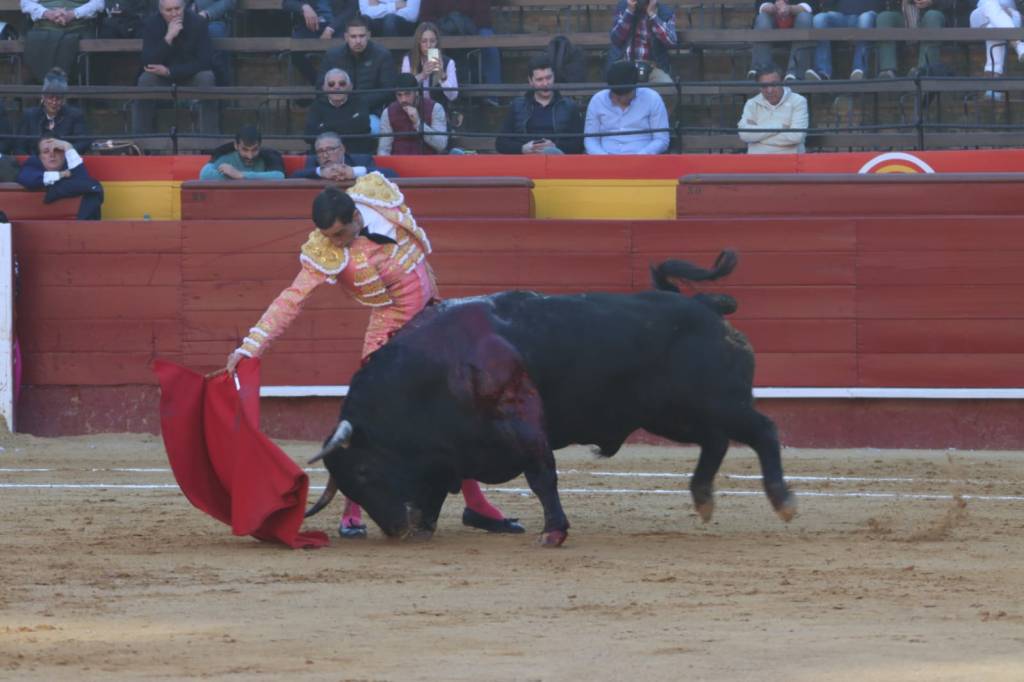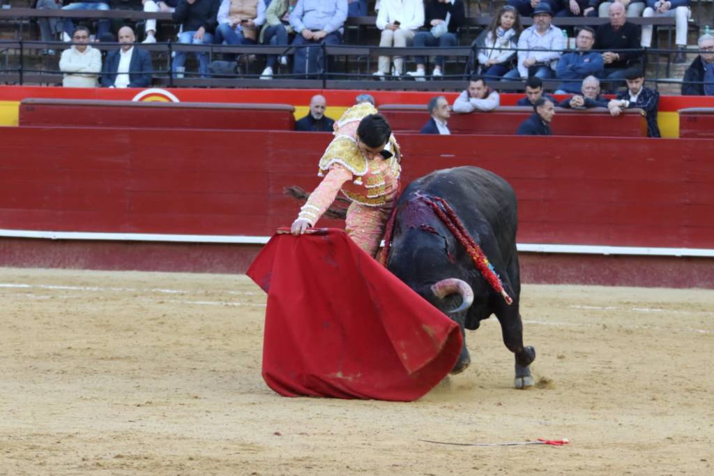 Fue para atrás el cuarto de la tarde, muy protestado desde antes de entrar al caballo; el presidente se aguantó hasta el tercer par de banderillas para sacar el pañuelo verde. Salió el primer sobrero, de Montalvo, y también fue para atrás por descordinarse tras la salida del caballo. Salió el segundo sobrero, también de Montalvo, muy protestado de salida por presentación y que no dijo nada en los primeros tercios -siendo insulso- pero embistió en la muleta del murciano, que lo cuajó de principio a fin por ambos pitones. Comenzó la obra de hinojos y dejó una faena llena de pureza y de verdad, sellando naturales auténticamente soberbios. Muy puro todo lo que hizo el de Lorca, conectando en todo momento con el tendido. Dejó un estoconazo y solamente se llevó un premio, pidiendo la segunda la afición de forma unánime, pero no otorgándola el palco