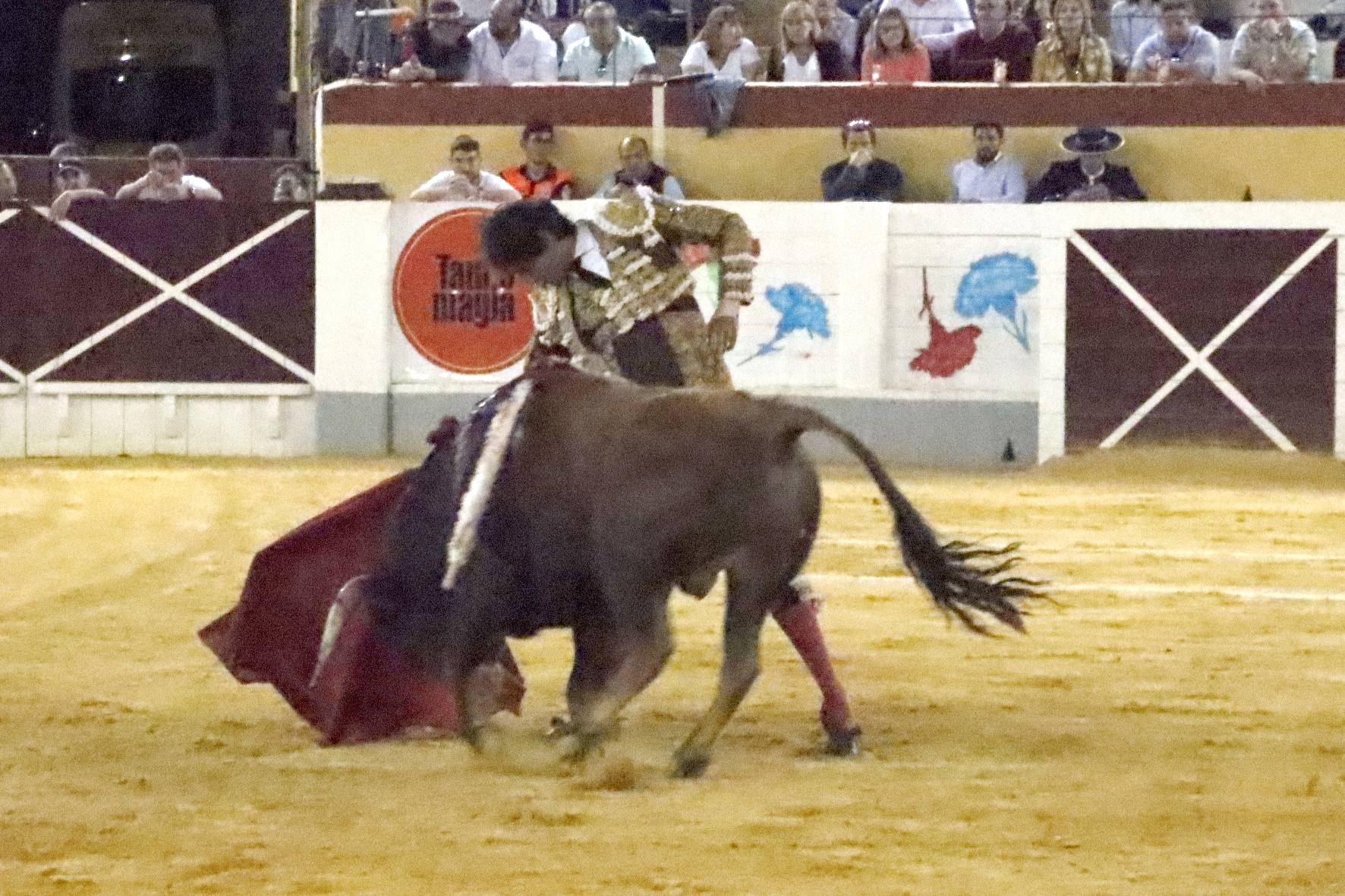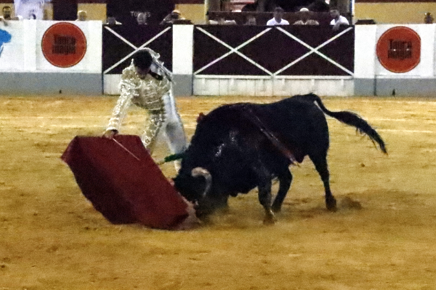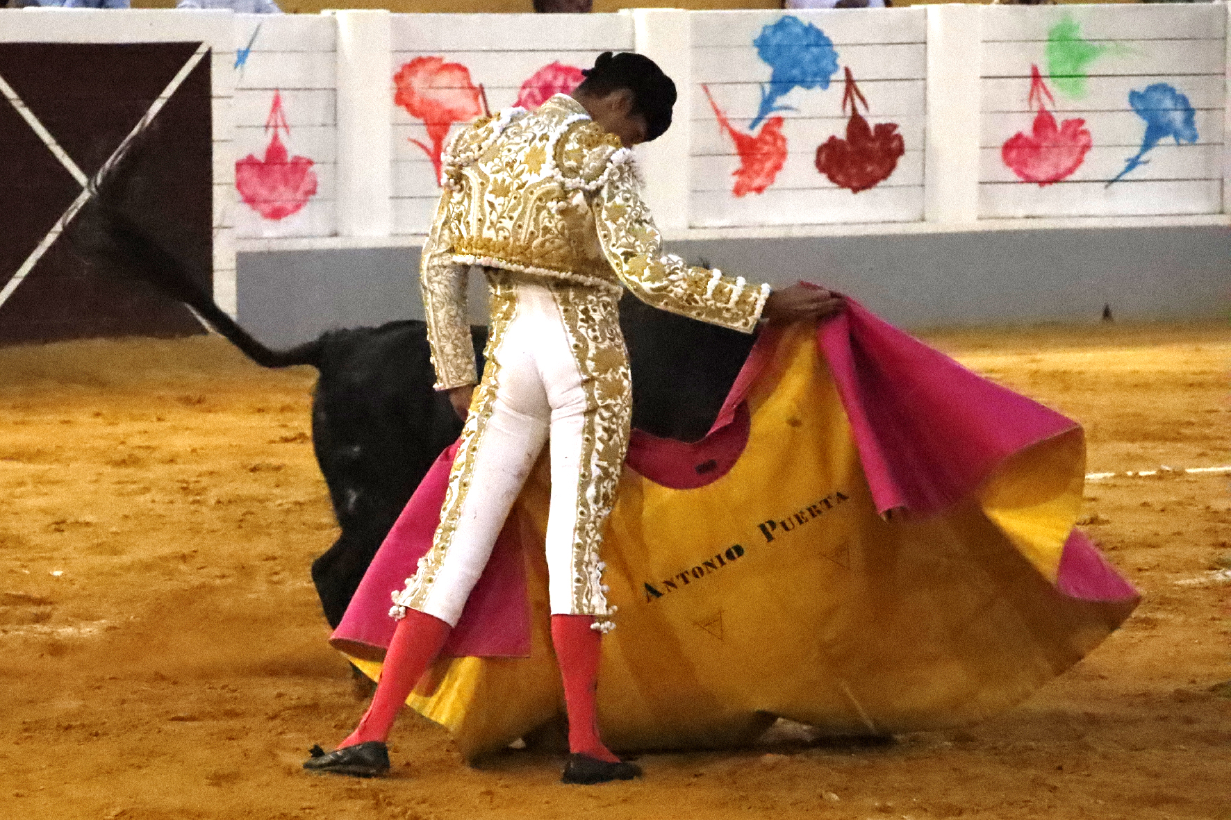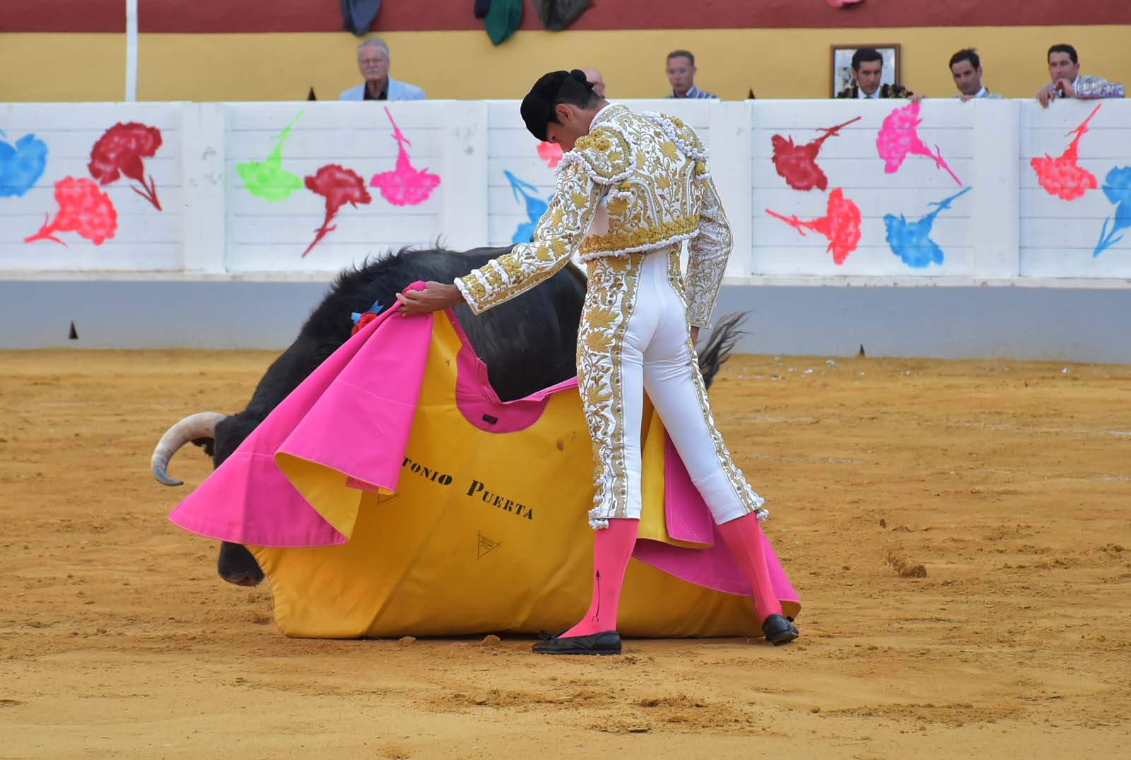 La lidia en el tercio de varas fue de trámite y en banderillas saludaron Carlos Pacheco y Salvador Lobato tras cuajar una buena actuación. Brindó el trasteo Antonio Puerta al público, consciente de su respuesta al acontecimiento. El torero local, ansioso de triunfo, se llevó a los medios al animal en el comienzo de faena, recetando excelentes muletazos a pies juntos. Con la figura muy erguida, intentó cerrar series, pero el bicho cerró la persiana de la casta y la transmisión. Se la jugó Antonio por ambos pitones, pegándose un arrimón sincero. Acabó su labor de un pinchazo, precedido de una estocada entera que desencadenó la petición de un trofeo. No hubo oposición y el presidente otorgó la oreja.