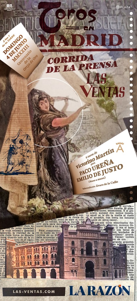 El cartel anunciador, obra de Juan Iranzo, diseñador del Departamento de Comunicación de Plaza 1, está basado en un collage en el que todo parte del cartel creado en el año 1900 por Benlliure para la primera corrida de toros de la Asociación de la Prensa.