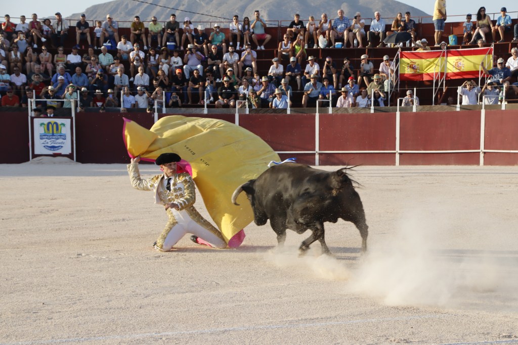 Entrega, voluntad y pundonor de Juan Belda con el tercero del festejo. El de Fortuna, que poco a poco fue haciéndose con las embestidas del de Albarreal, que se movió con buena condición; se pegó un sincero arrimón. Belda, con el toro ya rajado, se metió entre los pitones causando el éxtasis de un entregadísimo público que se volcó con él. Con la plaza en clamor, sorprendió a todos tirándose a matar sin muleta, al puro estilo del recordado maestro Antonio José Galán. Del trance salió prendido, con la taleguilla hecha trizas, pero indemne y con la satisfacción del deber cumplido. Las dos orejas y el rabo cayeron a su esportón como agua de mayo. Que le den más toros.