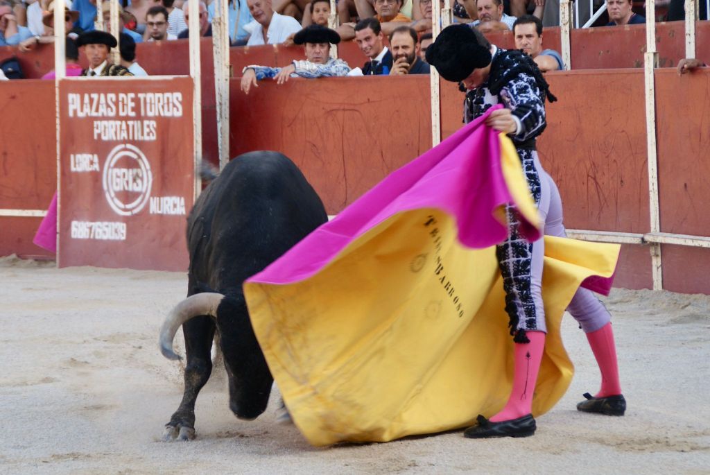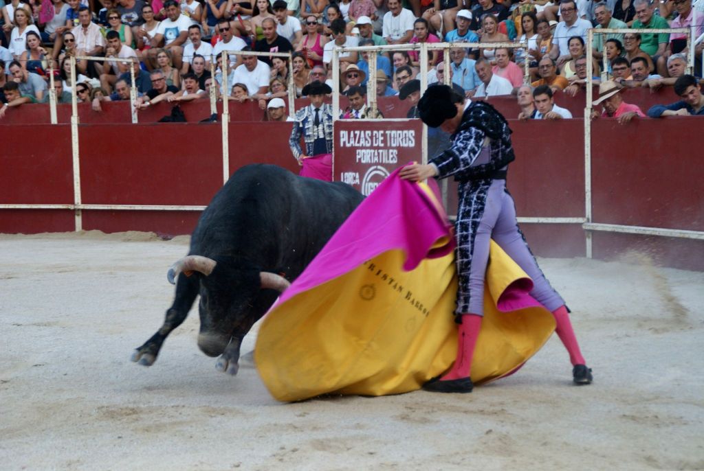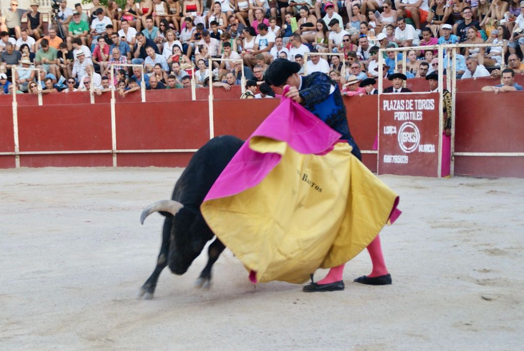 Blanca, la capital taurina del Valle de Ricote, celebró este sábado, 12 de agosto, la primera novillada de su Feria Taurina de San Roque. En el festejo, encuadrado en la III edición del certamen de novilladas “Villa de Blanca”, tomaron parte frente a novillos de Pablo Mayoral los novilleros con picadores Diego Bastos y Tristán Barroso. La plaza de toros portátil instalada para la ocasión en la plaza del ayuntamiento de Blanca registró en torno a tres cuartos de entrada.