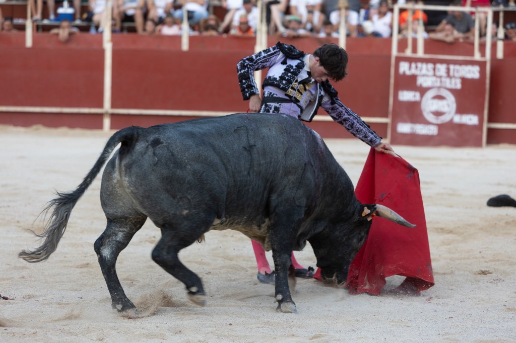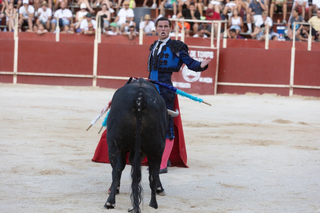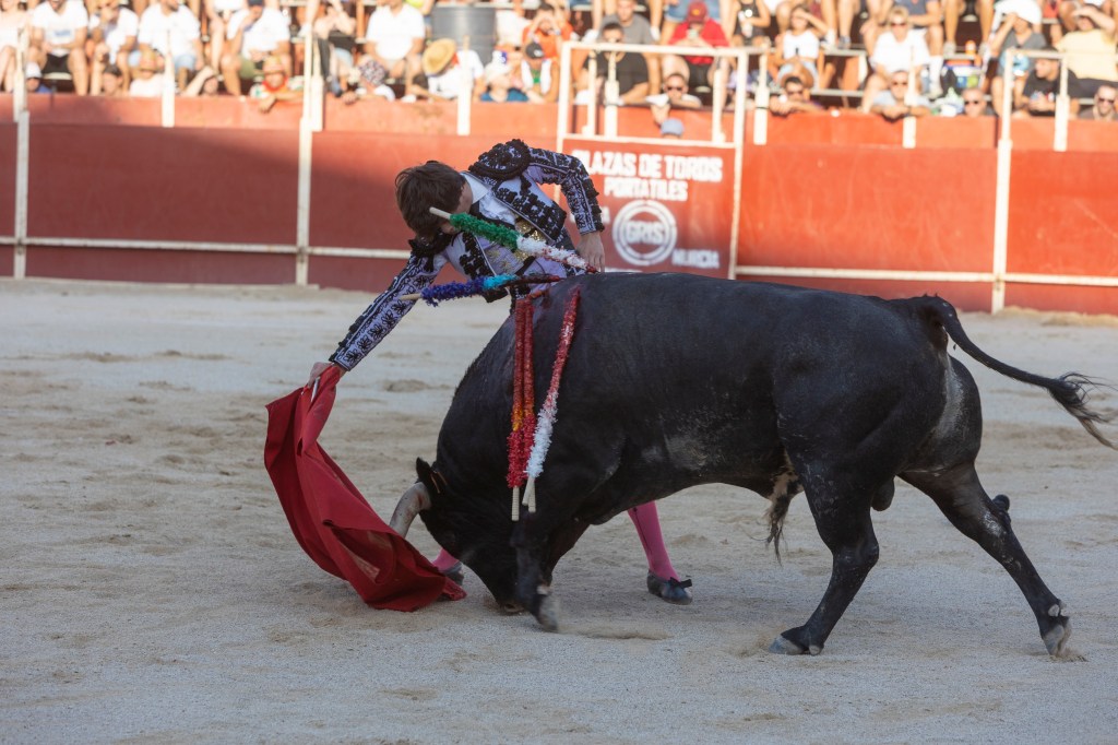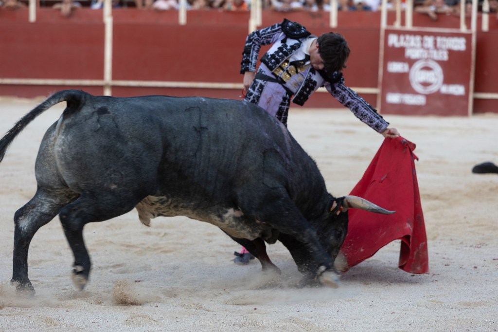 Tristán Barroso dejó una faena intermitente al segundo de la tarde, ya con el capote lo recibió a la verónica y realizó un quite por chicuelinas. El animal se fue apagando quedándose corto en la embestida provocando varios desarmes. Aún así el novillero apostó y exprimió todo lo que el animal tuvo dentro dejando algunos derechazos de buen trazo. Por el pitón izquierdo se vieron naturales sueltos de perfecta ejecución. Se atascó con los aceros y fue silenciado.