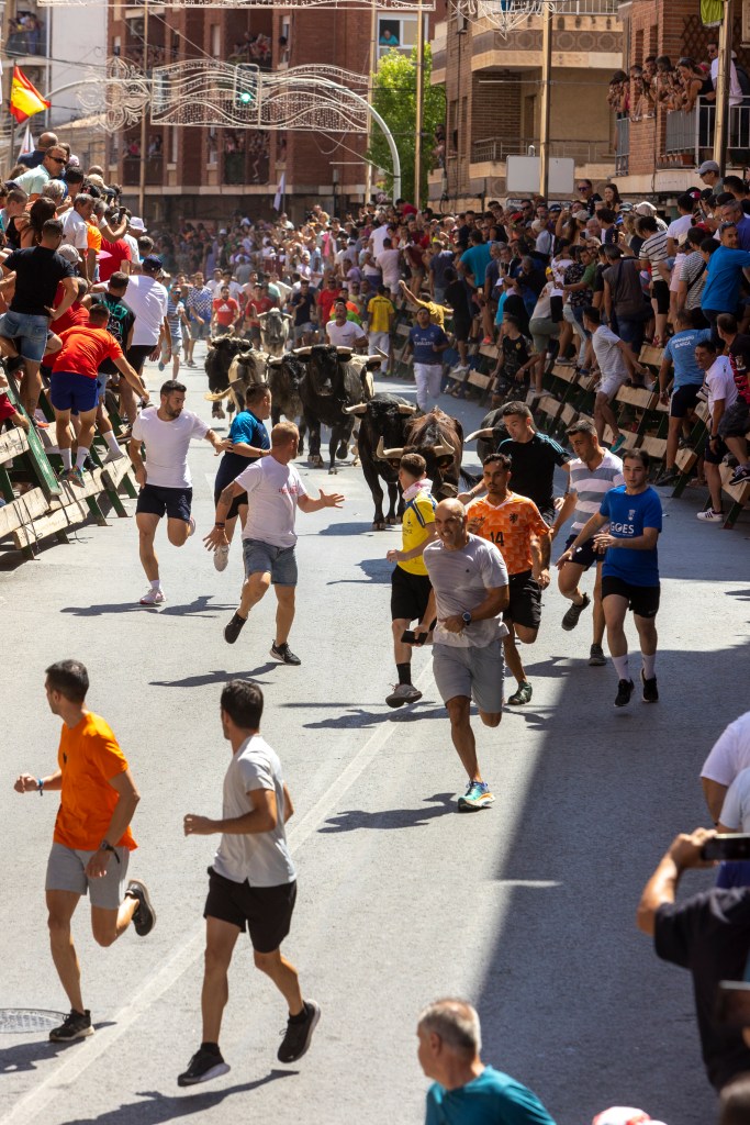 Los novillos de José Escolar salieron a las 12:31 h. en un encierro que ha sido rápido y limpio durante sus 3 minutos de duración, en un evento que ha congregado hoy alrededor de 20.000 personas.