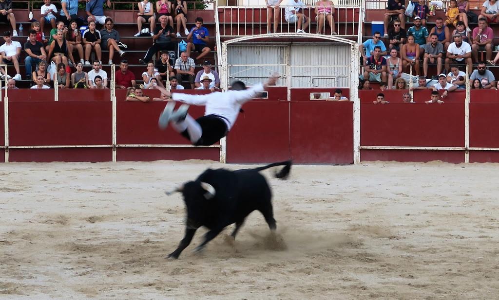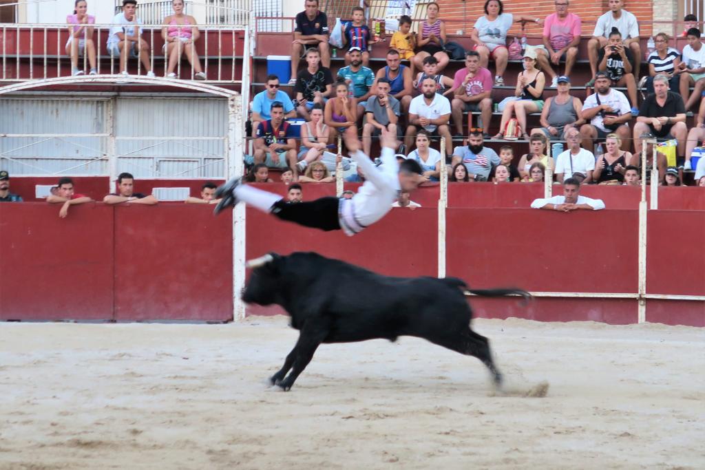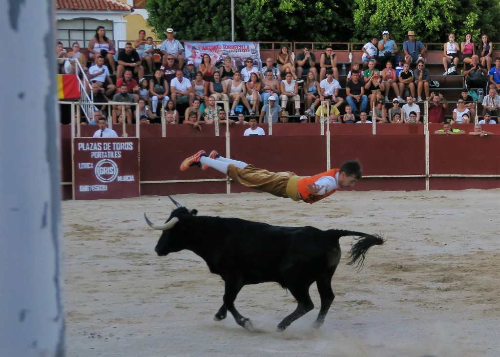 La localidad murciana de Blanca acogió este lunes, 14 de agosto, un concurso de recortadores incluido en su Feria Taurina en honor a San Roque. El espectáculo resultó triunfal, tanto por lo realizado por los intrépidos recortadores en el ruedo, como en la taquilla, ya que la plaza de toros registró un llenazo, llegándose a colgar el cartel de “no hay billetes”. Y es que los festejos populares en las localidades del noroeste de la Región de Murcia están cogiendo mucho predicamento en los últimos años. De hecho, de esta zona son dos de los más destacados murcianos de esta especialidad, el caravaqueño Antonio Torrecilla y el blanqueño Jesús Banegas.