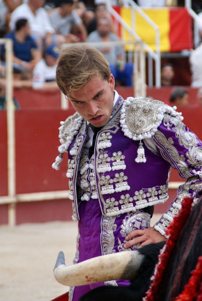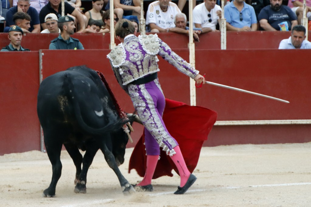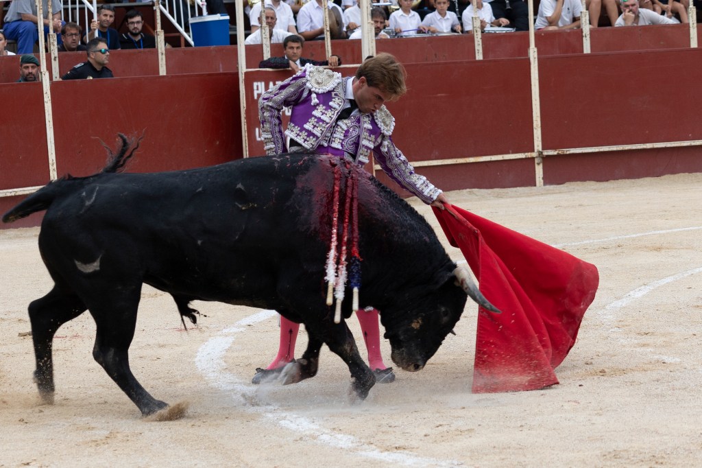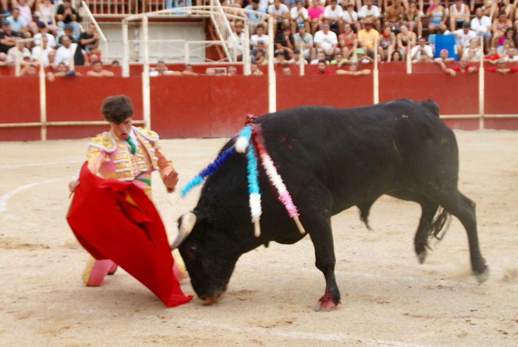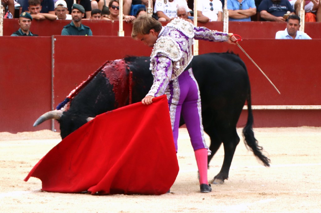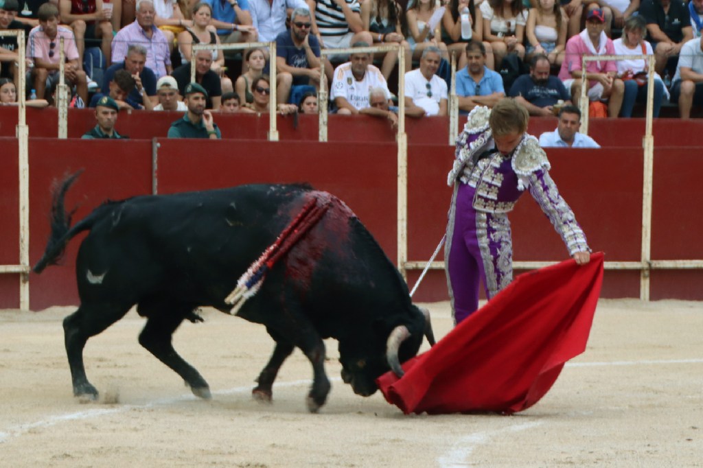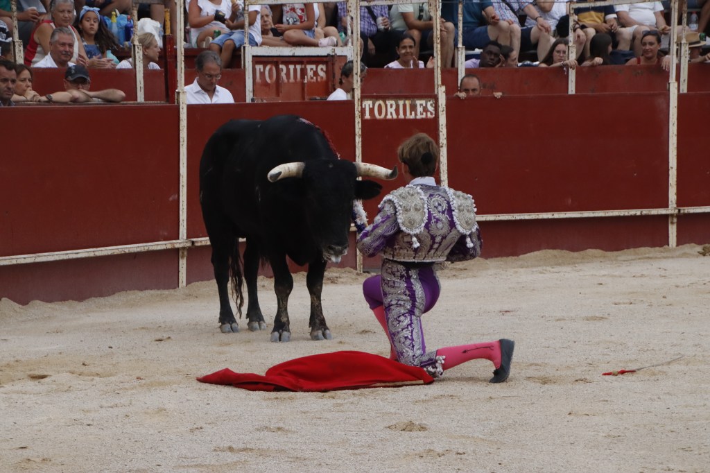 Tuvimos que esperar al cuarto de la tarde para ver al novillo de mejor condición del encierro. Tristán Barroso puso toda la carne en el asador y de salida se lució a la verónica gustándose. Con la muleta el animal tuvo más movilidad que los anteriores y permitió ligarle los muletazos. El novillo se fue a menos pero se gustó en el inicio de faena con la mano derecha dándole derechazos de gran trazo. Pinchazo y media estocada. Oreja.