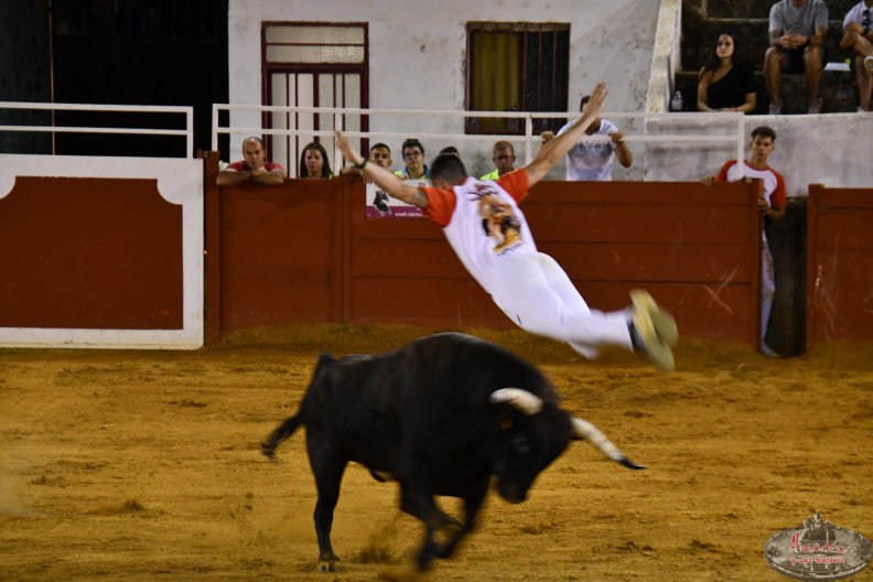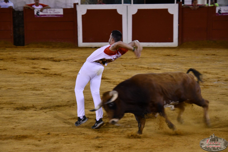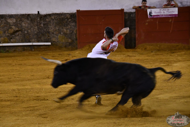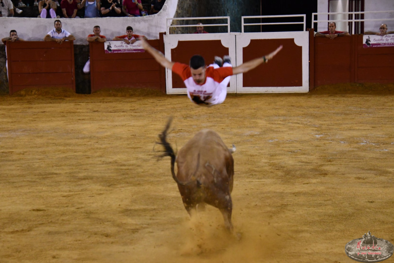 El murciano poco a poco va abriéndose paso en este mundo del recorte y ya rivaliza con los nombres más destacados de la especialidad. Si el lunes se quedó en segunda posición en el concurso de recortadores celebrado en Blanca, ayer martes, en Chillón, Torrecilla sorprendió con unos excelentes saltos, recortes y quiebros.