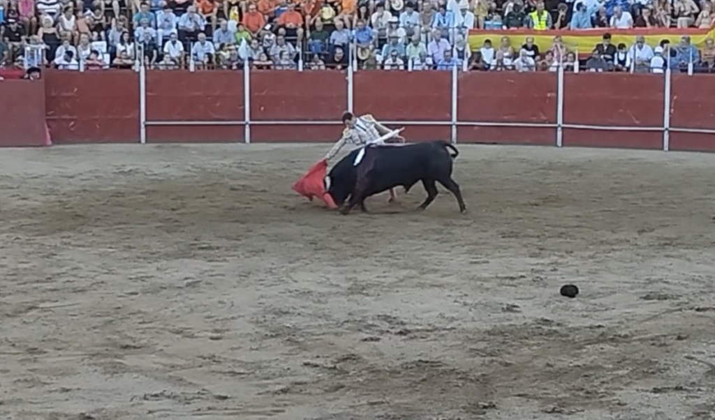 José María Trigueros abrió la tarde con un recibo capotero de rodillas, para seguir después toreando a la verónica, muy ceñido. Brindó la faena a Javier Jiménez, director de Mundotoro. El murciano dejó tres tandas muy buenas con la mano derecha a un novillo que al salir de el embroque cabeceaba y deslucía los muletazos. Con la mano izquierda lo probó sin llegar a dar una tanda redonda, pero si algún natural bueno. Estuvo por encima de el novillo con firmeza y valor. Mató de dos pinchazos arriba y estocada un pelín atravesada. Saludó desde el tercio.