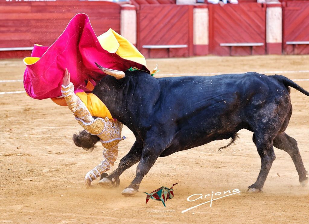 Voltereta para empezar en el recibo de capote, tras intentar gustarse por chicuelinas, tras no «tragarse» el toro la verónica. Se dolió del brazo el toricantano tras la fea cogida que pudo ser peor. De puntillas pasó por el caballo el toro, justito de fuerzas, antes de que una voltereta mermase aun más las posibilidades.