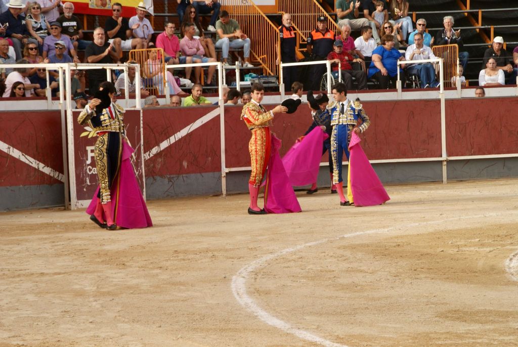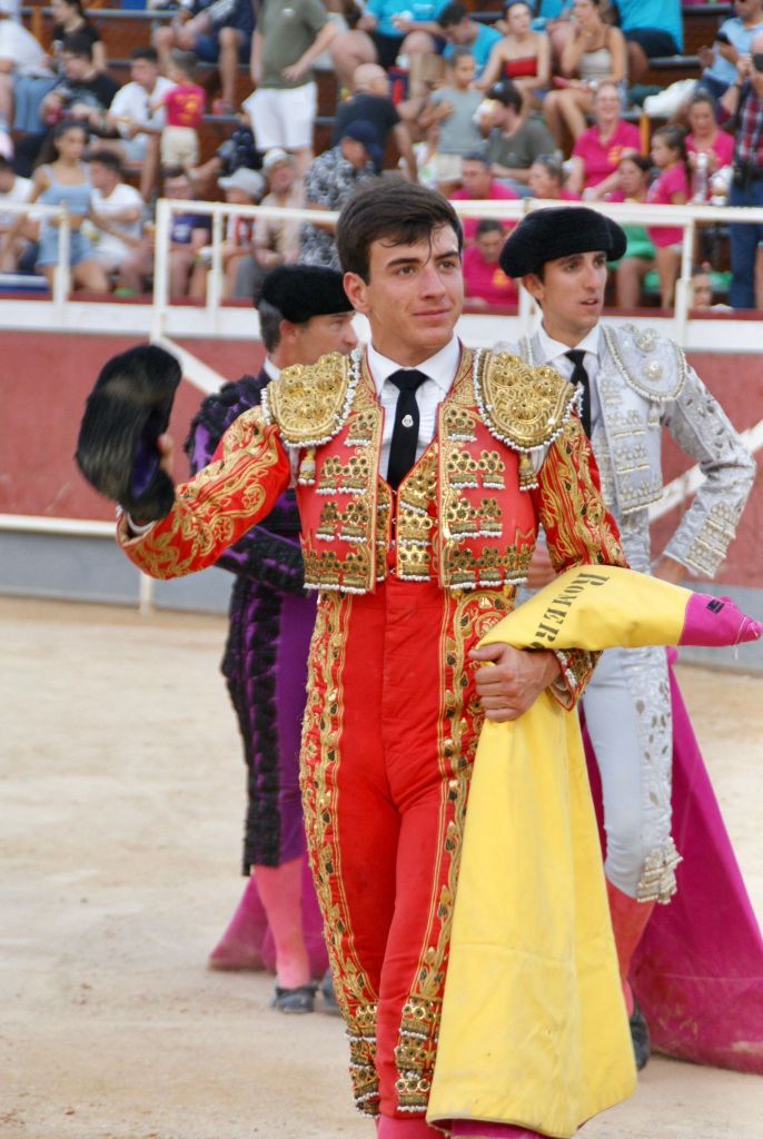 Calasparra acogió este lunes, 4 de septiembre, la primera novillada de la Feria del Arroz 2023 que tuvo como protagonistas a los novillos de “Los Bayones” y a los novilleros Jorge Molina, Juan Herrero y Nek Romero. Con las ganas de toros por las nubes tras el aplazamiento de la novillada prevista para ayer domingo, la afición respondió de buena manera, llenando el coso portátil instalado para la ocasión en cerca de sus tres cuartas partes. Al finalizar el paseíllo se guardó un minuto de silencio en memoria de José García Cuadrado, torilero de la plaza de toros de Calasparra recientemente fallecido.