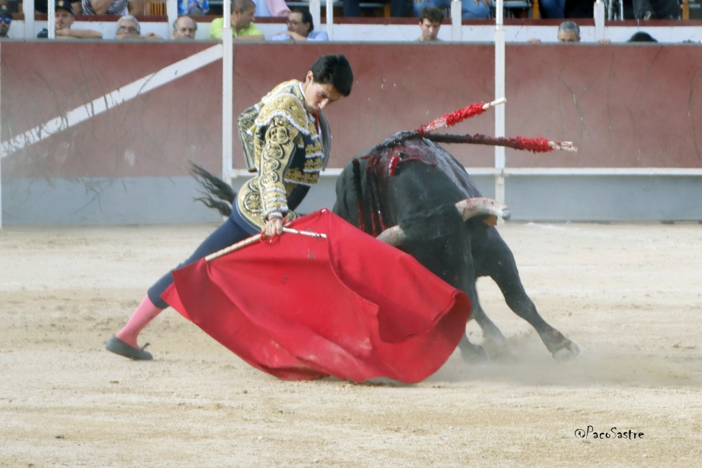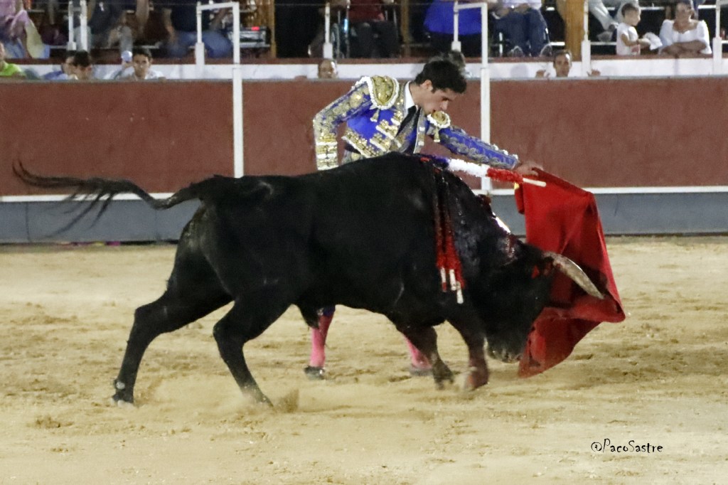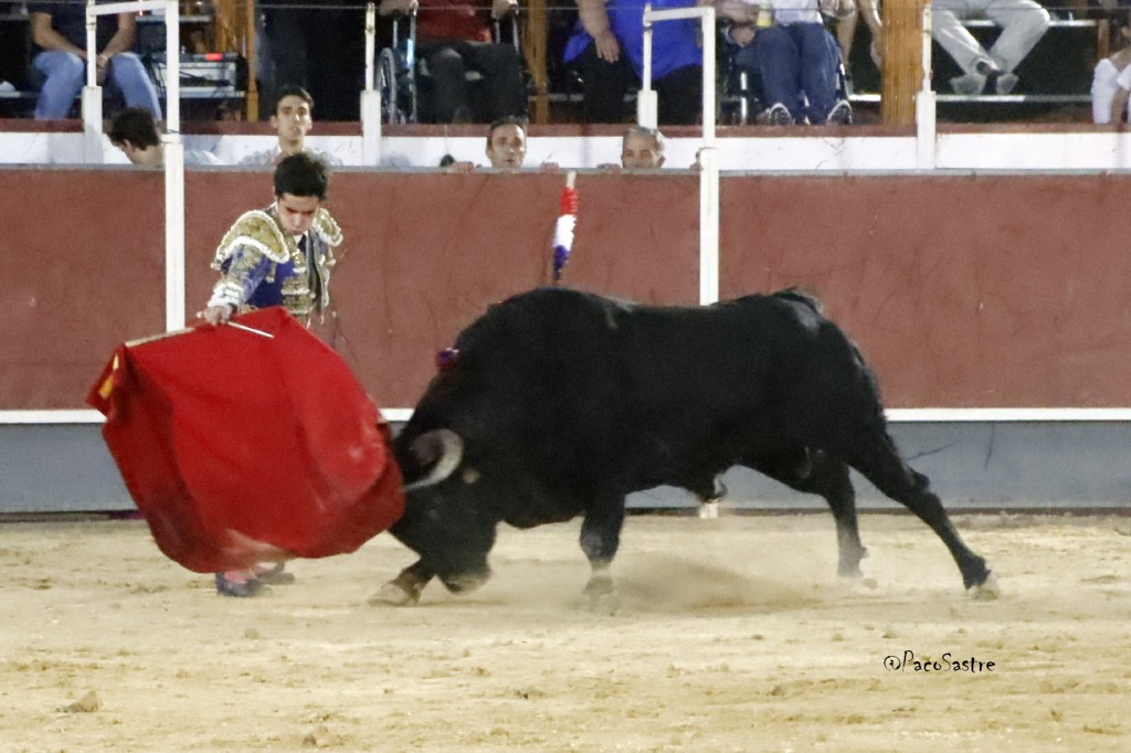 El de Torrijos dejó tres tandas de derechazos al principio, en donde intentó llevar al animal largo, pero faltó trasmisión con los tendidos, ya que se percibió poco acoplamiento. Pese a todo, la música sonó. El de “Los Bayones” fue más claro por el pitón izquierdo, donde se desplazó con entrega y humillación. Dejó algún natural de calidad, pero volvió al pitón derecho donde el novillero se mostró más cómodo. Recetó un pinchazo y un bajonazo que requirió un golpe de verduguillo. No acertó con la cruceta el toledano, pero el animal terminó echándose. Escuchó el silencio respetuoso del público, mientras que el novillo fue arrastrado entre las palmas del respetable.