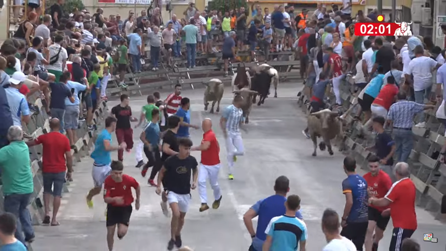 Complicado segundo encierro de la feria de Calasparra, protagonizado por los novillos de la ganadería de “Prieto de la Cal”.