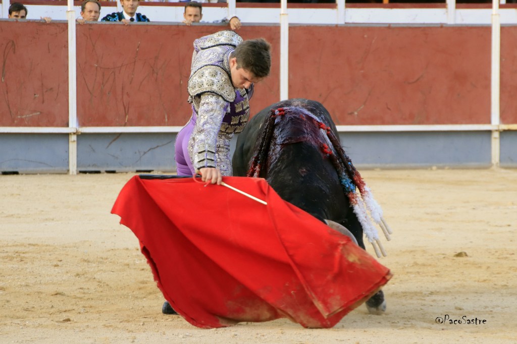 Voluntariosa faena de Joao D’Alva al quinto de la tarde. Puso todo de su parte en banderillas y dejó tres pares en todo lo alto exponiendo mucho. Se puso en los medios y cuando el novillo le pasó por la espalda le golpeó una banderilla en ojo. Se repuso y no se lo pensó, con la mano diestra le dio una tanda de derechazos poniendo los olés en el tendido y haciendo que sonase Amparito Roca. Cuando la faena tenía que romper el novillo se afligió y se apagó, dejándonos con el sabor de boca de los derechazos. Lo intentó por ambos pitones el luso sin lograr sacarle un pase más, pegándose un arrimón final. Se atascó con los aceros y todo quedó en silencio tras escuchar un aviso.