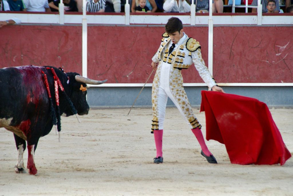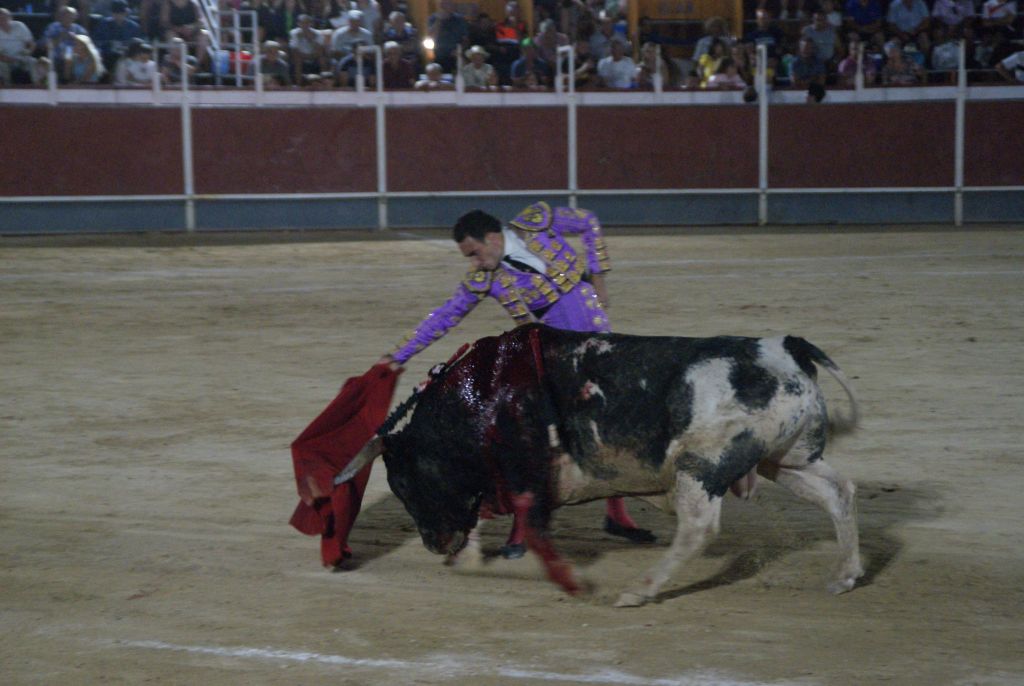 Muy suelto salió el segundo de la tarde. Caótico fue el tercio de varas donde le llegaron a dar cinco puyazos entre los dos caballos, ninguno en el sitio. Excelente tercio de banderillas que el público supo ver y obligó a desmonterarse a David Sevilla y Alexis Ducasse. Brindo la faena al público murciano García Corbacho y enfrente tuvo a un novillo que fue repetidor y metía la cara con humillación. Comenzó por el pitón derecho sin acople pero con muchas ganas. La faena a pesar de intentarlo no alcanzó las cotas necesarias. Por el pitón izquierdo hubo naturales sueltos de gran trazo. El fallo con la tizona lo emborronó todo escuchando dos avisos.