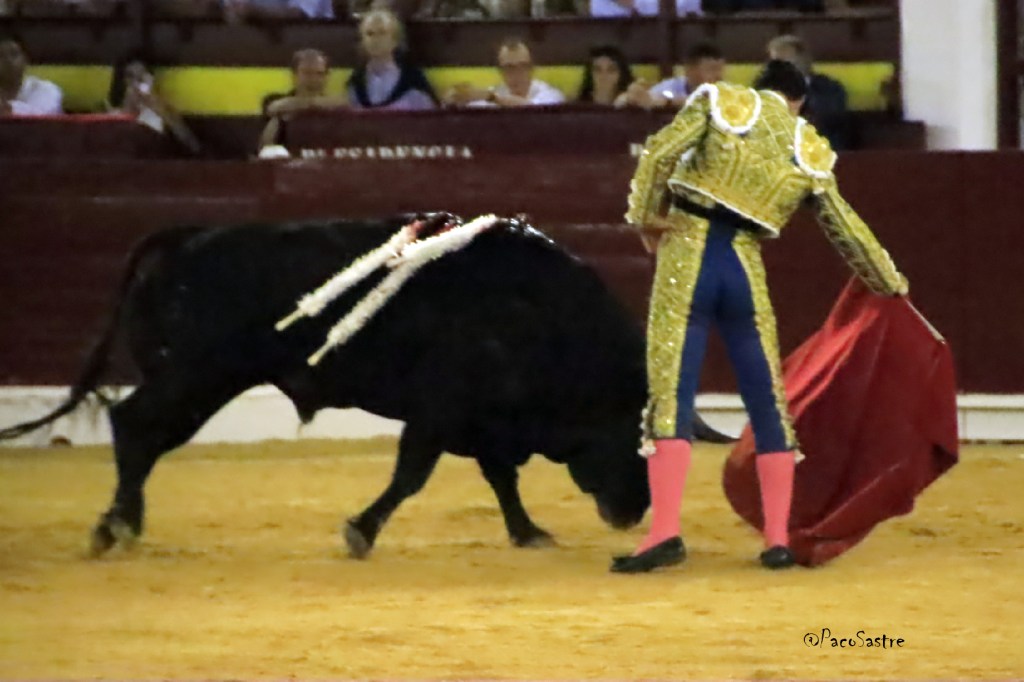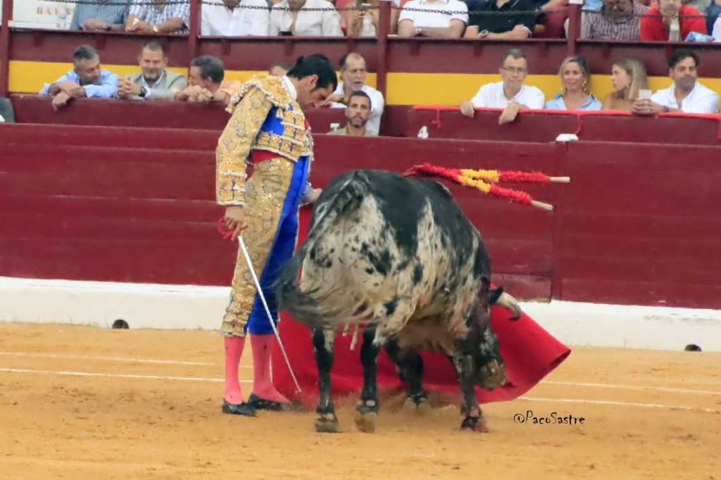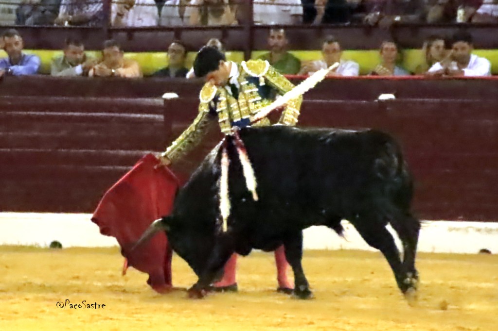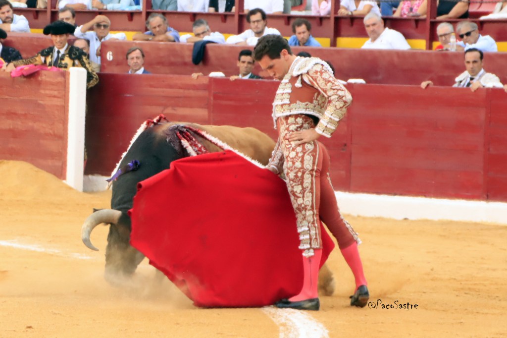 El sexto fue devuelto al señalar Pablo Aguado problemas de visión. El sobrero se movió más y Aguado aprovechó para ligar series por el lado derecho con temple y buen estilo. Con el toro más apagado, también se gustó al natural en una faena en la que optimizó la condición del toro de Algarra. Hubo torería de principio a fin y dejó estocada. Oreja.