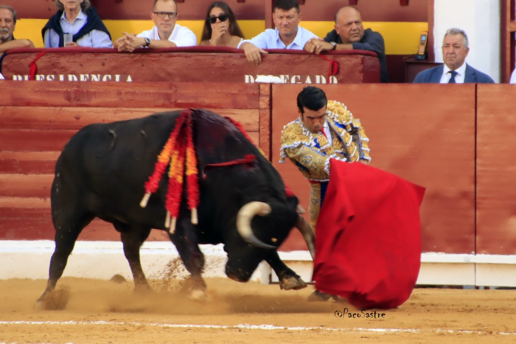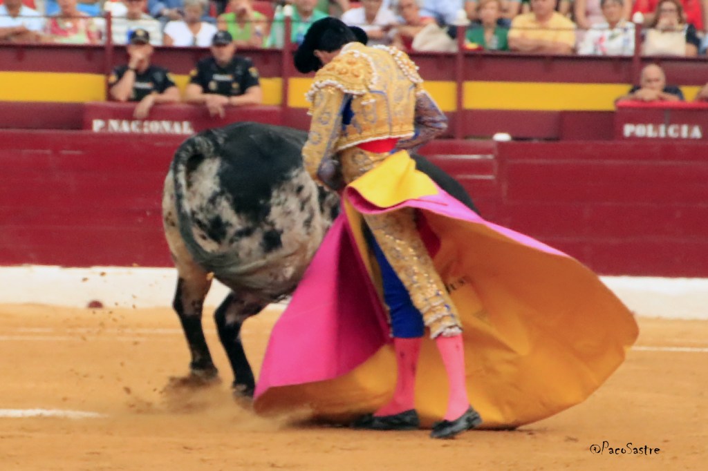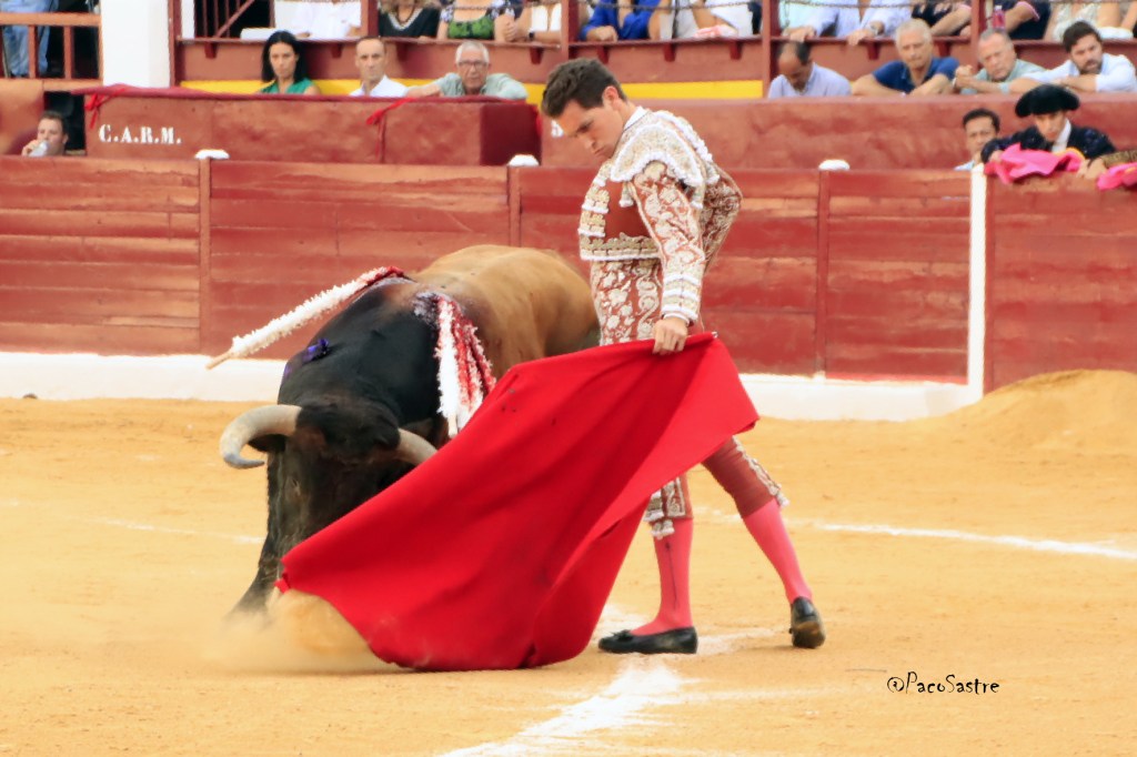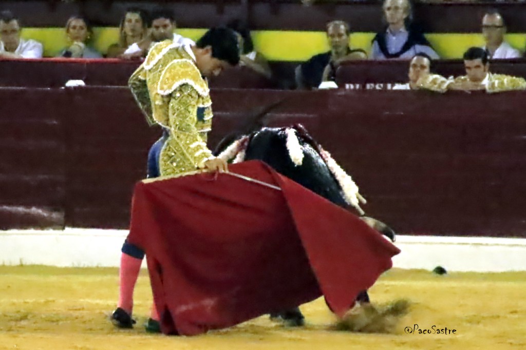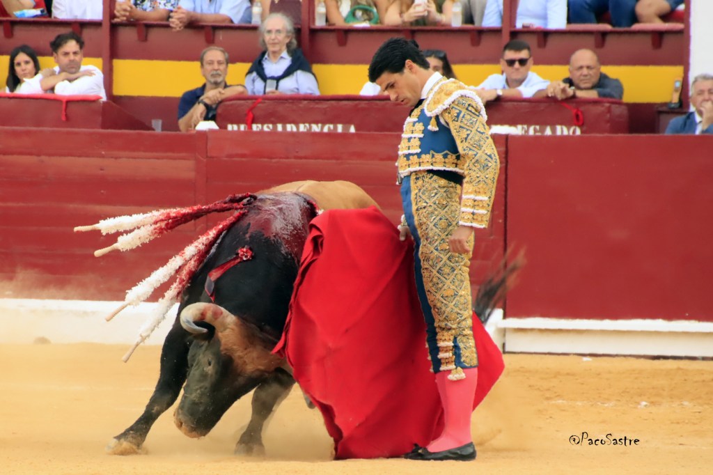 El sexto fue devuelto al señalar Pablo Aguado problemas de visión. El sobrero se movió más y Aguado aprovechó para ligar series por el lado derecho con temple y buen estilo. Con el toro más apagado, también se gustó al natural en una faena en la que optimizó la condición del toro de Algarra. Hubo torería de principio a fin y dejó estocada. Oreja.