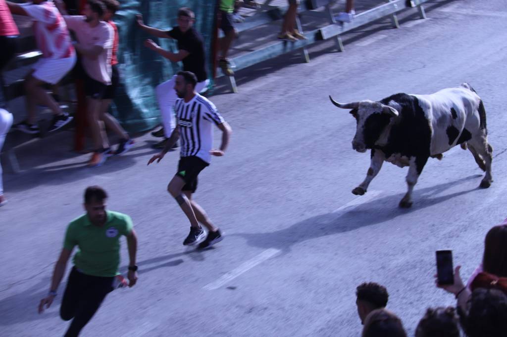 La manada ha salido unos metros por detrás de los bueyes, propiciando las carreras de los mozos. Uno de los novillos se ha descolgado de la manada en la calle Mayor, lo que ha provocado momentos de peligro, sin llegar a provocar daños.