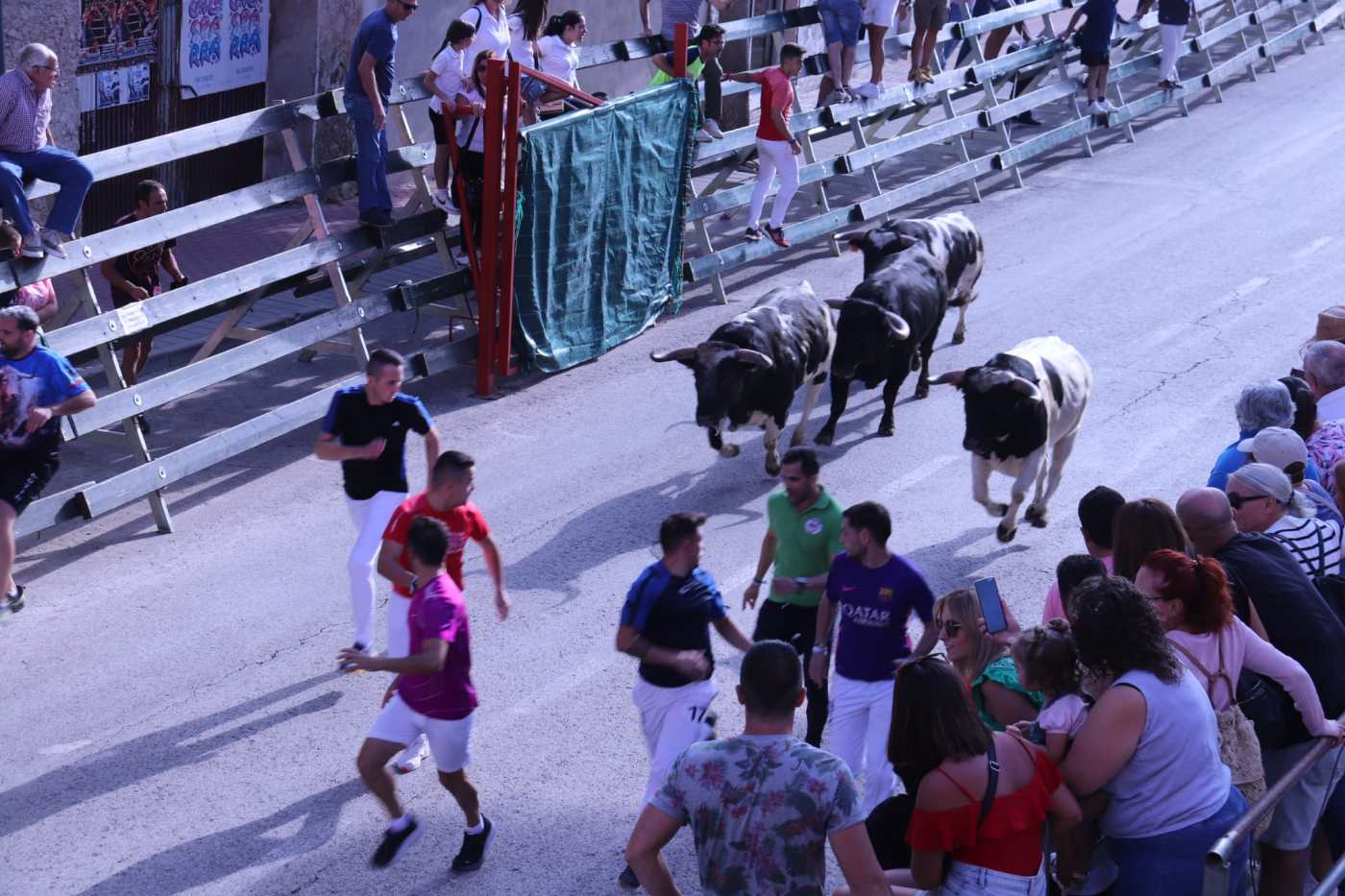 La manada ha salido unos metros por detrás de los bueyes, propiciando las carreras de los mozos. Uno de los novillos se ha descolgado de la manada en la calle Mayor, lo que ha provocado momentos de peligro, sin llegar a provocar daños.
