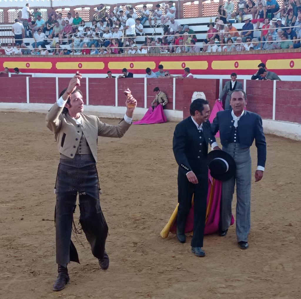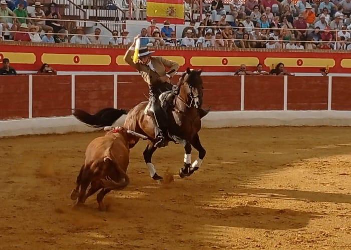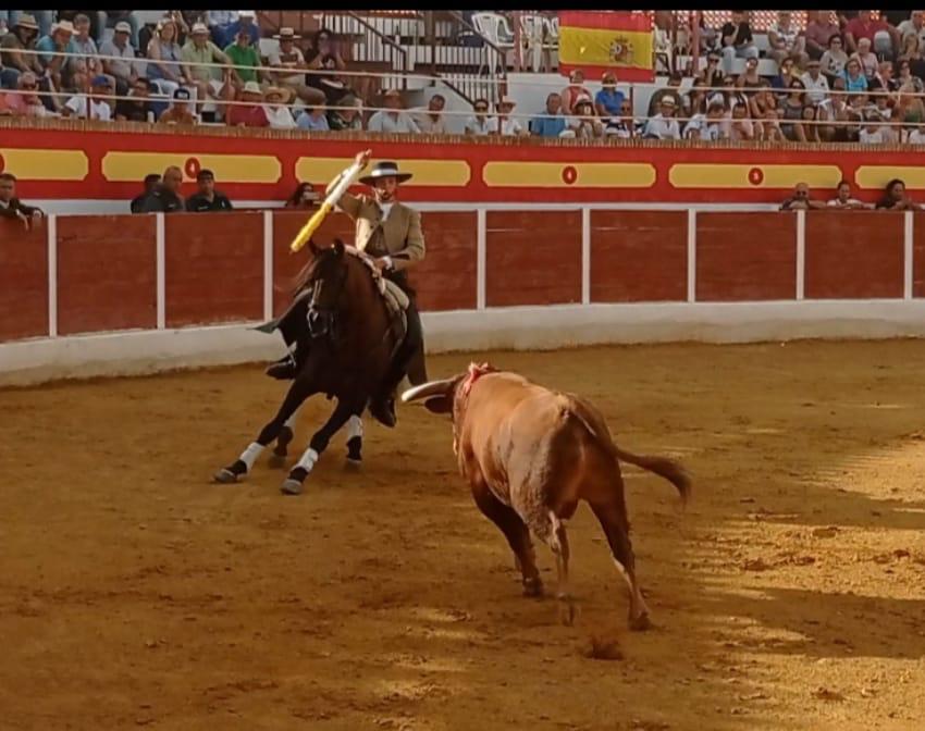 El rejoneador murciano obtuvo un triunfo rotundo al desorejar al primer novillo del festejo. Felipe Alcaraz se mostró como un firme valor del Arte de Marialva, progresando cada día más en un mundo que no es nada fácil. Estuvo notable con las banderillas, clavando arriba y llevando las embestidas del animal hilvanadas a la grupa de sus monturas. La faena resultó ser vistosa y cogió enteros con las cortas y con un rejón efectivo. Las dos orejas fueron un justo premio.