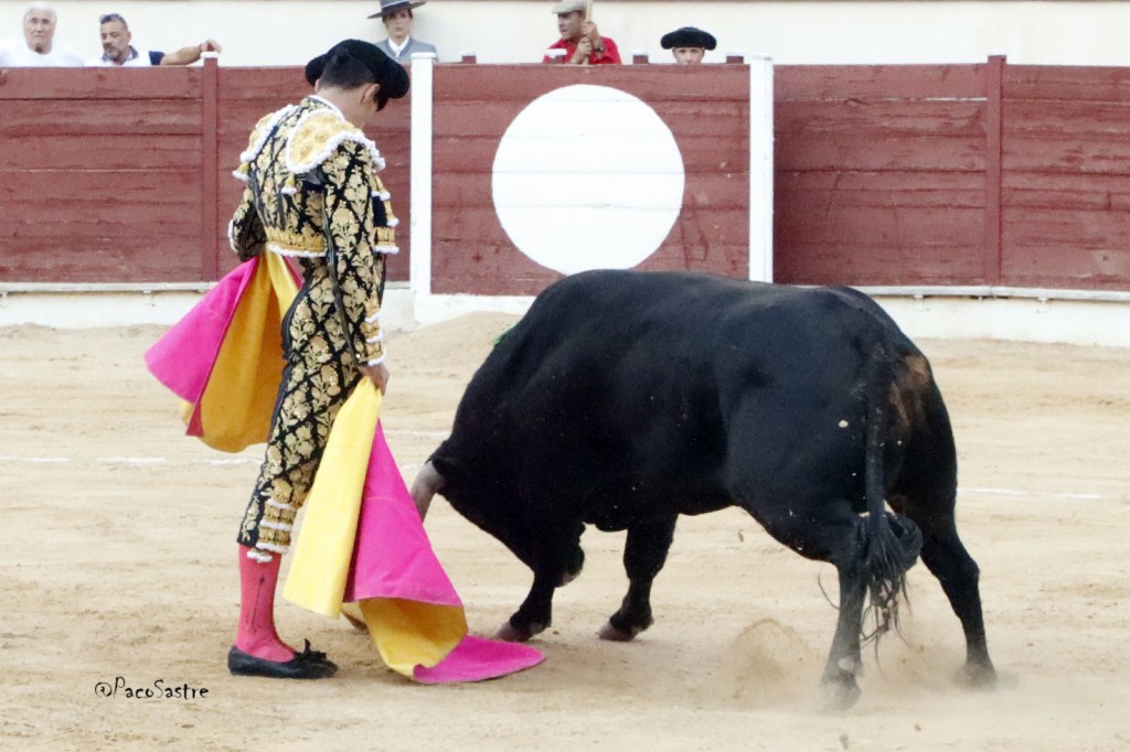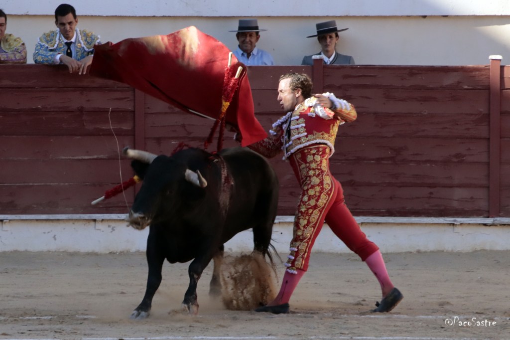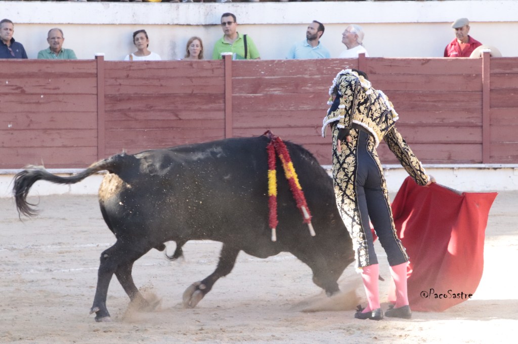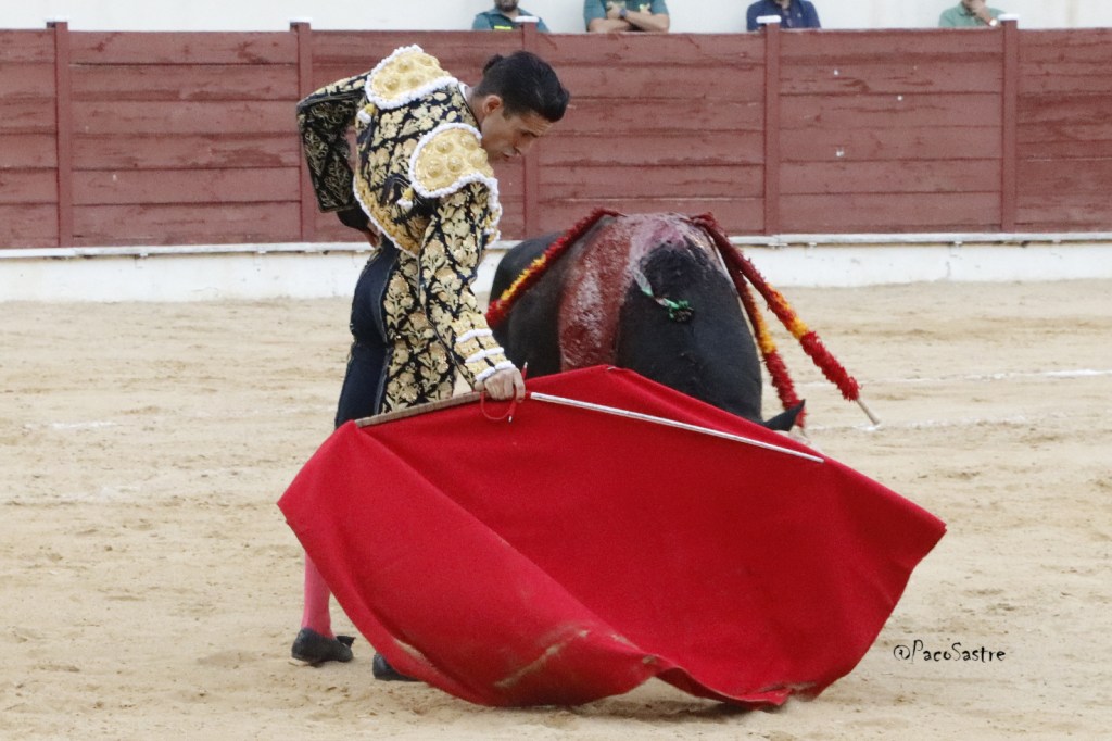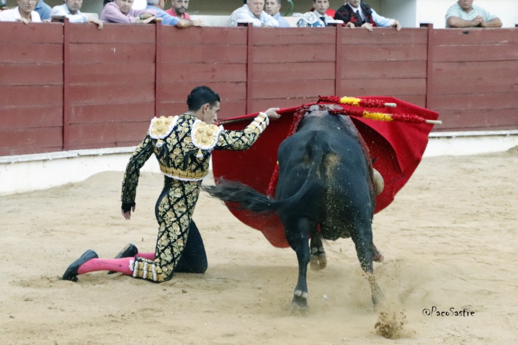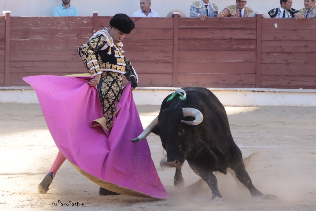 Dos orejas cortó Rafaelillo del primero, un toro noble pero con las fuerzas justas. Lo recibió con una larga cambiada, un ramillete de verónicas y la media. Brindó al tendido, comenzó obra de rodillas y alargó con oficio los muletazos del animal. Lo despenó de una estocada y paseó dos orejas.