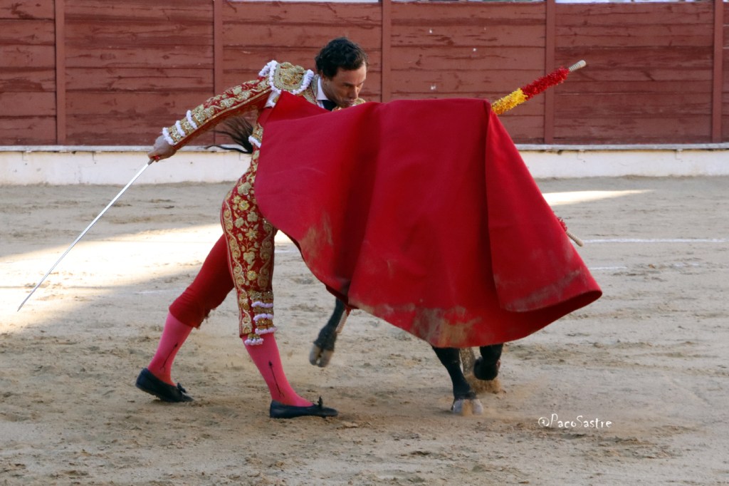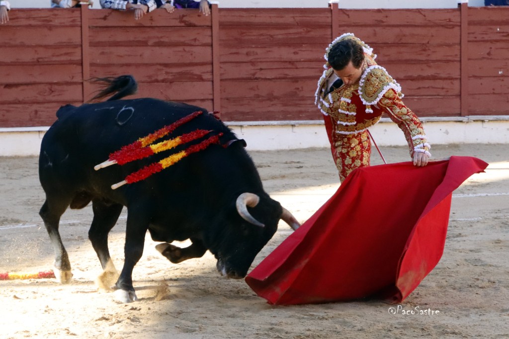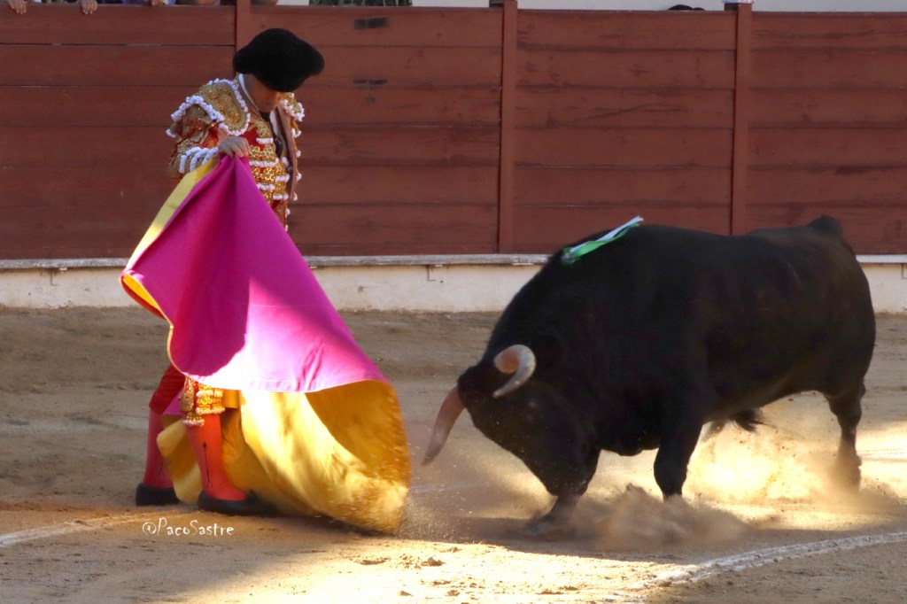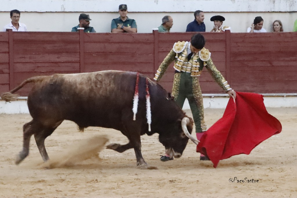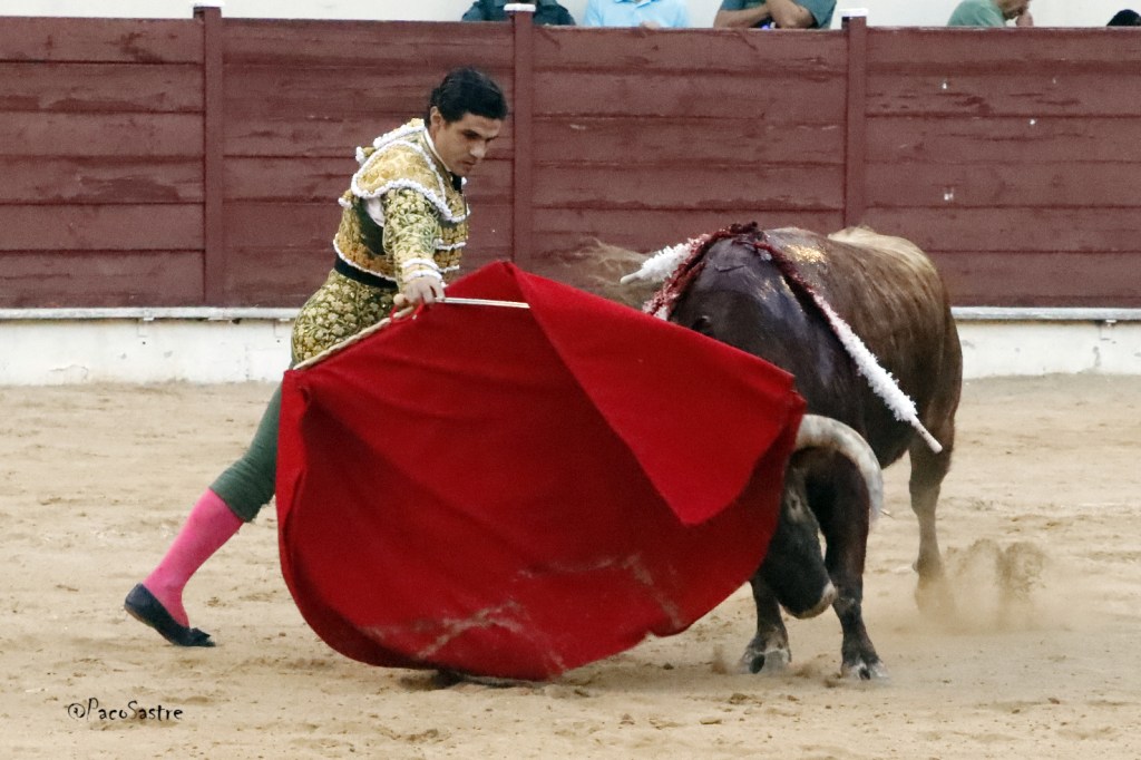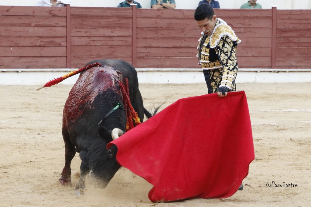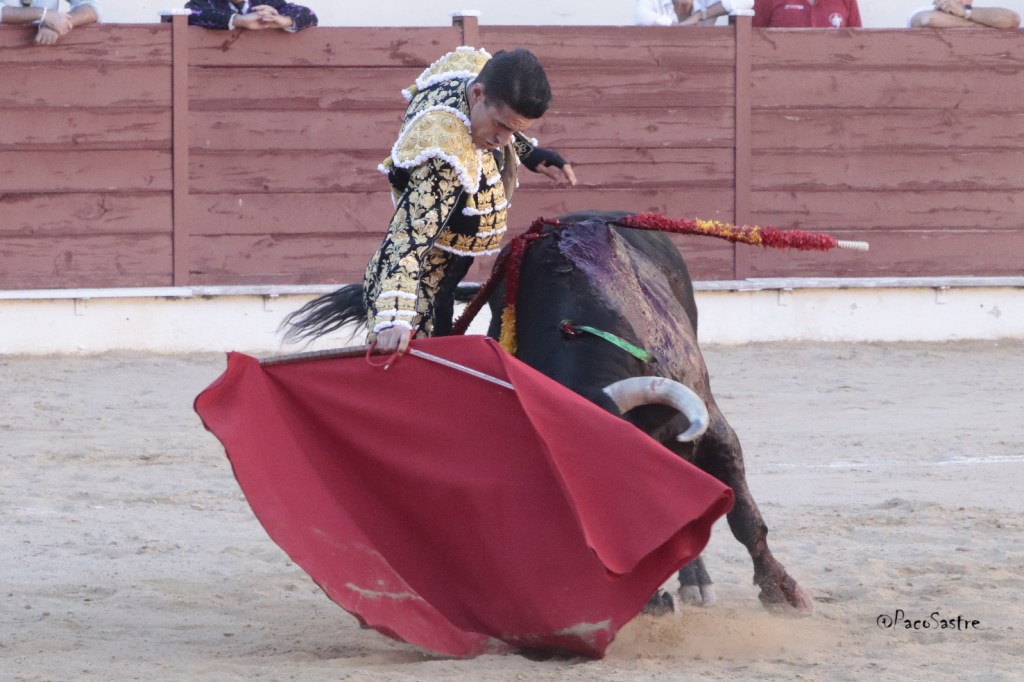 Dos orejas cortó Rafaelillo del primero, un toro noble pero con las fuerzas justas. Lo recibió con una larga cambiada, un ramillete de verónicas y la media. Brindó al tendido, comenzó obra de rodillas y alargó con oficio los muletazos del animal. Lo despenó de una estocada y paseó dos orejas.