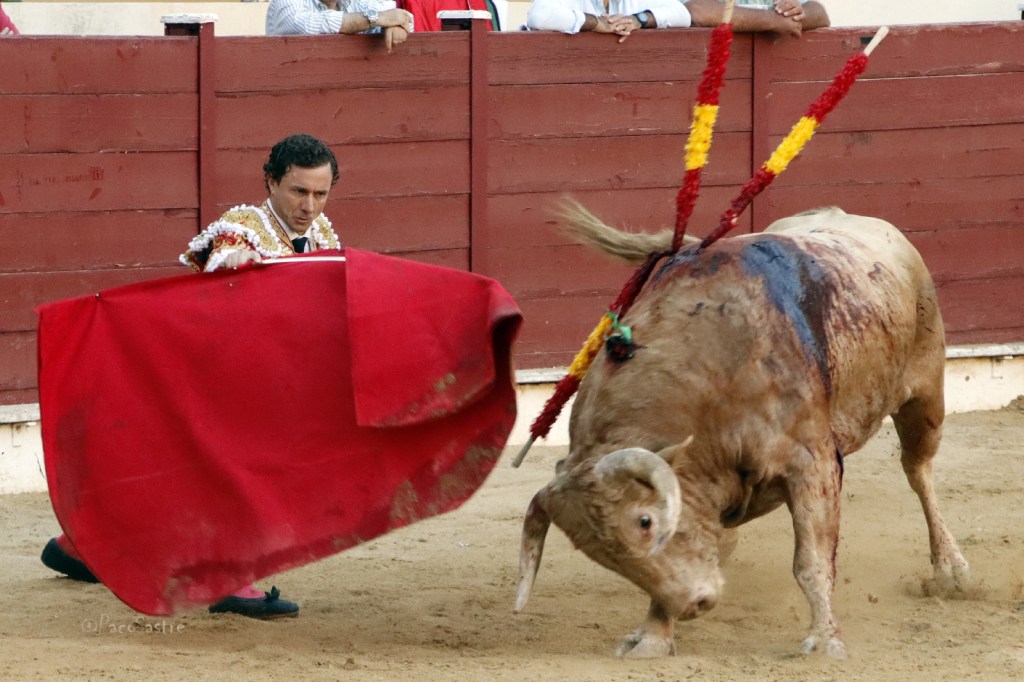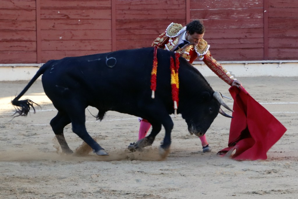 Una oreja con fuerte petición de la segunda en el cuarto para Rafaelillo. Brindó la faena de muleta a sus ahijados, hijos de su banderillero de confianza Pascual Mellinas, hoy a las órdenes de Pablo Aguado. El animal terminó manseando, tras recibirlo con largas de rodillas, verónicas y revolera. También de hinojos comenzó faena el murciano, que buscó los terrenos de adentro y llegó con fuerza arriba. Media estocada en lo alto y oreja de peso.
