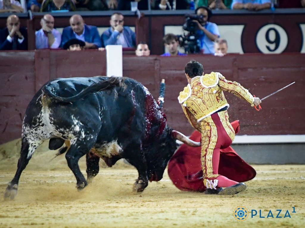Paco Ureña le dejó puesta la muleta al manso, y con mucha decisión, se salió con el toro a los medios plantándole batalla. Valentísimo el de Lorca, asumió el riesgo, y sacó muletazos muy meritorios, tanto por el pitón derecho como por el izquierdo. Firme y con una gran actitud, terminó pegándole unos doblones sobresalientes en el remate de faena. Se tiró con mucha fe a matar, recetando un pinchazo y recibiendo un fuerte y escalofriante golpe en el pecho que le rompió el chaleco. Lo cazó al segundo intento con una estocada atravesada. Necesitó usar el descabello, perdiendo por su mal uso la posibilidad de cortar una oreja de peso. Dio una vuelta al ruedo.