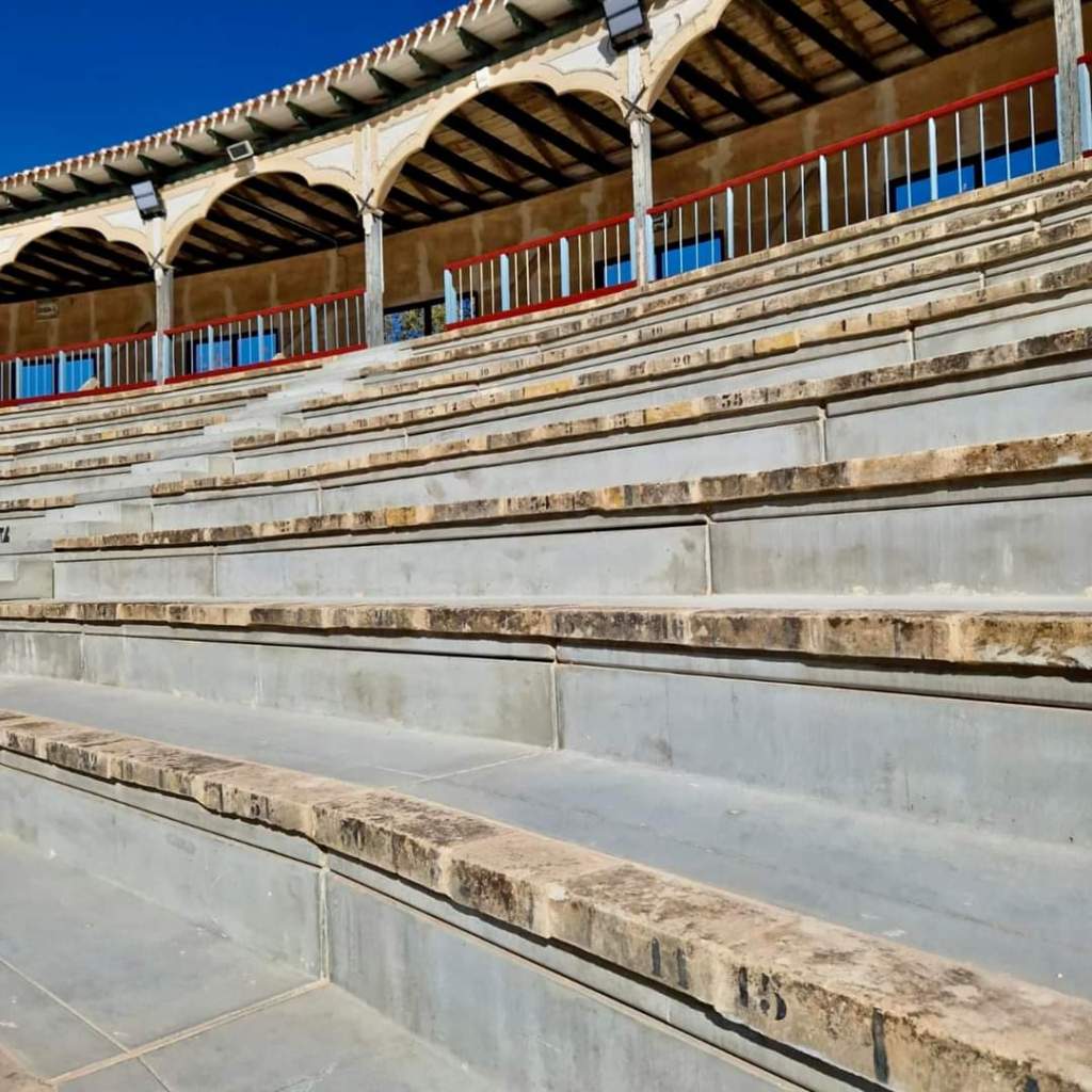 Las obras de reconstrucción de la plaza comenzaron en mayo de 2020, en plena pandemia del coronavirus y pasaron por diferentes vicisitudes, como varios cambios de empresas que ejecutaban la rehabilitación, así como la aprobación de modificación del proyecto por parte de la Dirección General de Cultura para demoler el tendido antiguo, algo que frenó considerablemente los tiempos de ejecución de las obras.