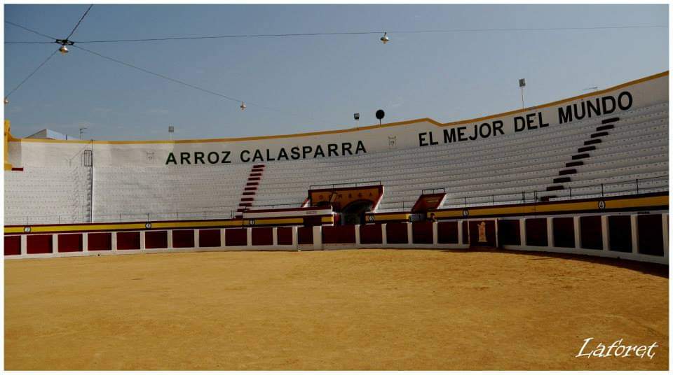 La plaza fue construida en 1896. Tras años de altibajos, cuando estaba abandonada, fue comprada y recuperada por los hermanos Caballero en 1973. A partir de 1991, con la creación por parte de la familia propietaria, lidera por Joaquín Caballero, junto al ayuntamiento y a los arroceros de la localidad de la “Feria del Arroz”, ha vivido sus momentos de mayor esplendor, siendo decisiva para la integración en las fiestas la recuperación de los Encierros, en 1999.