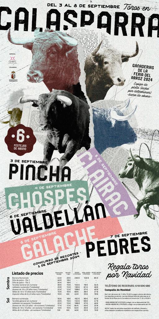 Además, la temporada taurina de Calasparra se completará con el certamen “Espiga de Plata” para novilleros sin picadores compuesto por dos festejos para el que todavía no hay fecha fija de celebración. Completa la oferta un concurso de recortadores, que tendrá lugar el 1 de septiembre. Las ganaderías para las dos novilladas sin caballos y los recortes se darán a conocer más adelante.